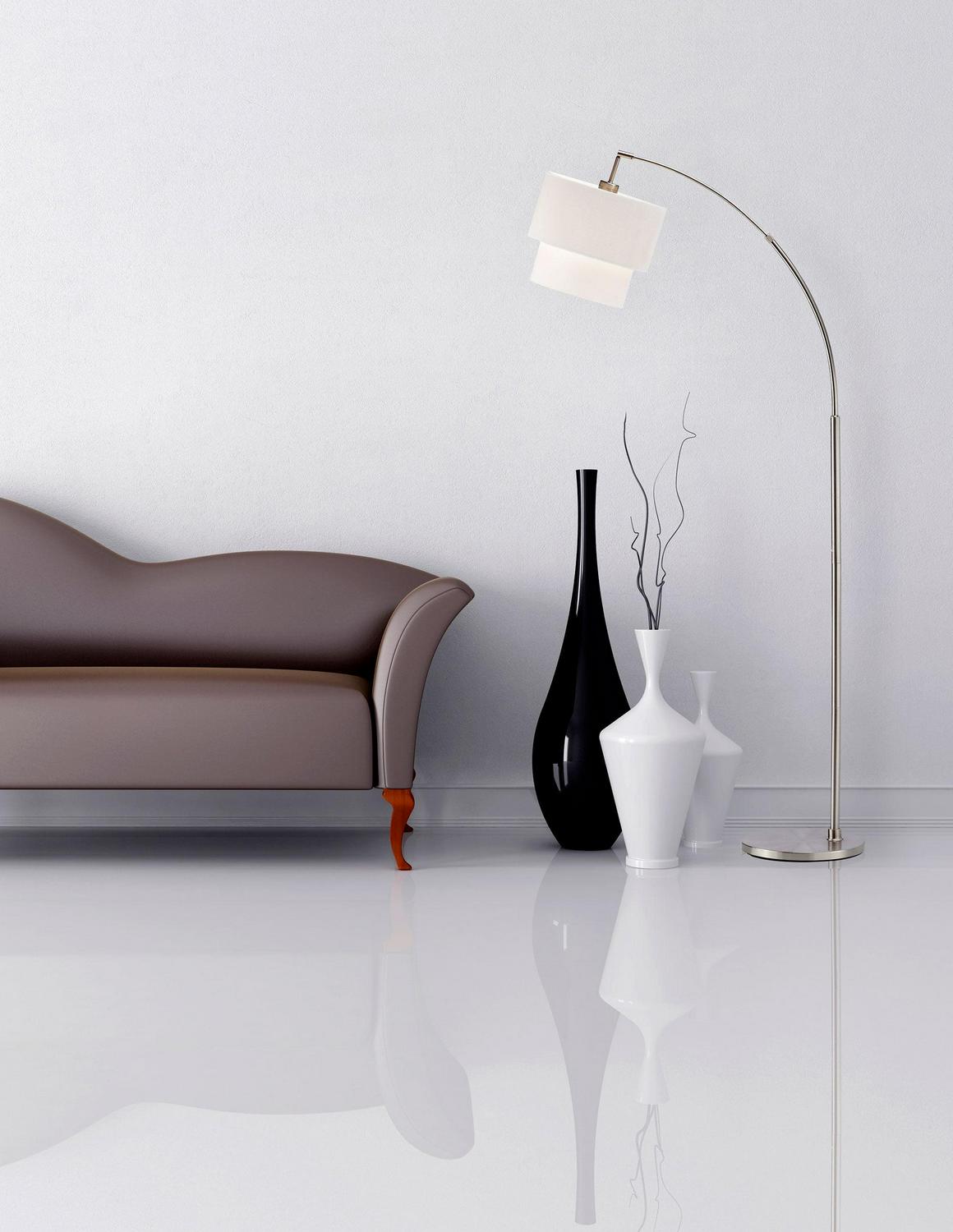 – Decor Floor Lamp: A smart lighting choice for sectionals or intimate seating areas, the Gala arc floor lamp provides a practical and stylish accent with its natural corrugated fabric shade. The adjustable arc rod and double shade plus three-way lamping assures plenty of control over the direction and level of light.