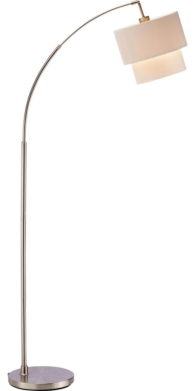 A smart lighting choice for sectionals or intimate seating areas, the Gala arc floor lamp provides a practical and stylish accent with its natural corrugated fabric shade. The adjustable arc rod and double shade plus three-way lamping assures plenty of control over the direction and level of light. A 3-way rotary socket switch will only work with a 3-way light bulb, otherwise this lamp will function with simple on/off switch at its highest setting. This floor lamp has a clear cord and is smart outlet compatible. Bulb is not included.