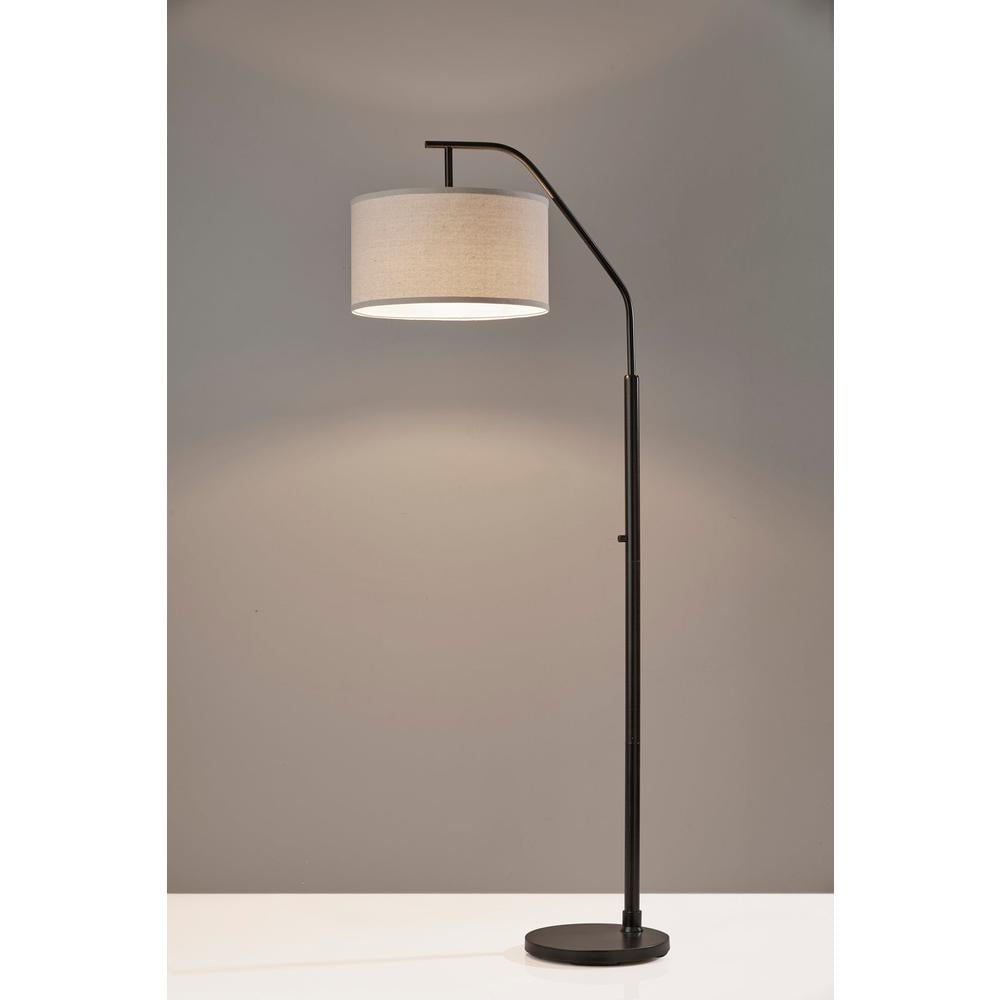 Matte Black Finish Oatmeal Linen Shade 66″ Height, curved arm extends 25″ This lighting product is either UL or ETL listed, meaning that it has been tested and approved to meet the government-regulated safety standards for the USA. 60% Metal, 30% Fabric, 10% Electrical Part Floor Lamp from the Max collection