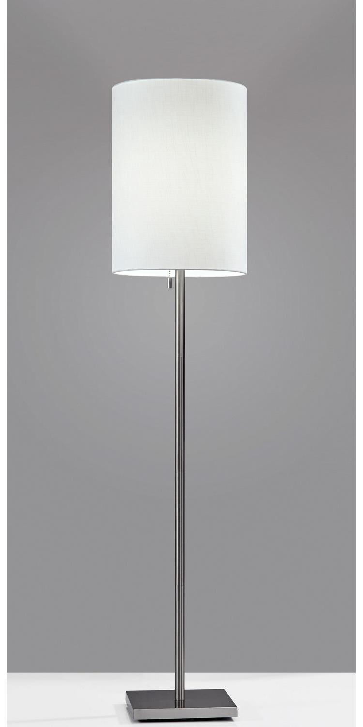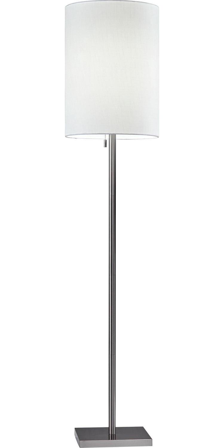 Adesso Liam Floor Lamp Brushed Steel White Textured Fabric