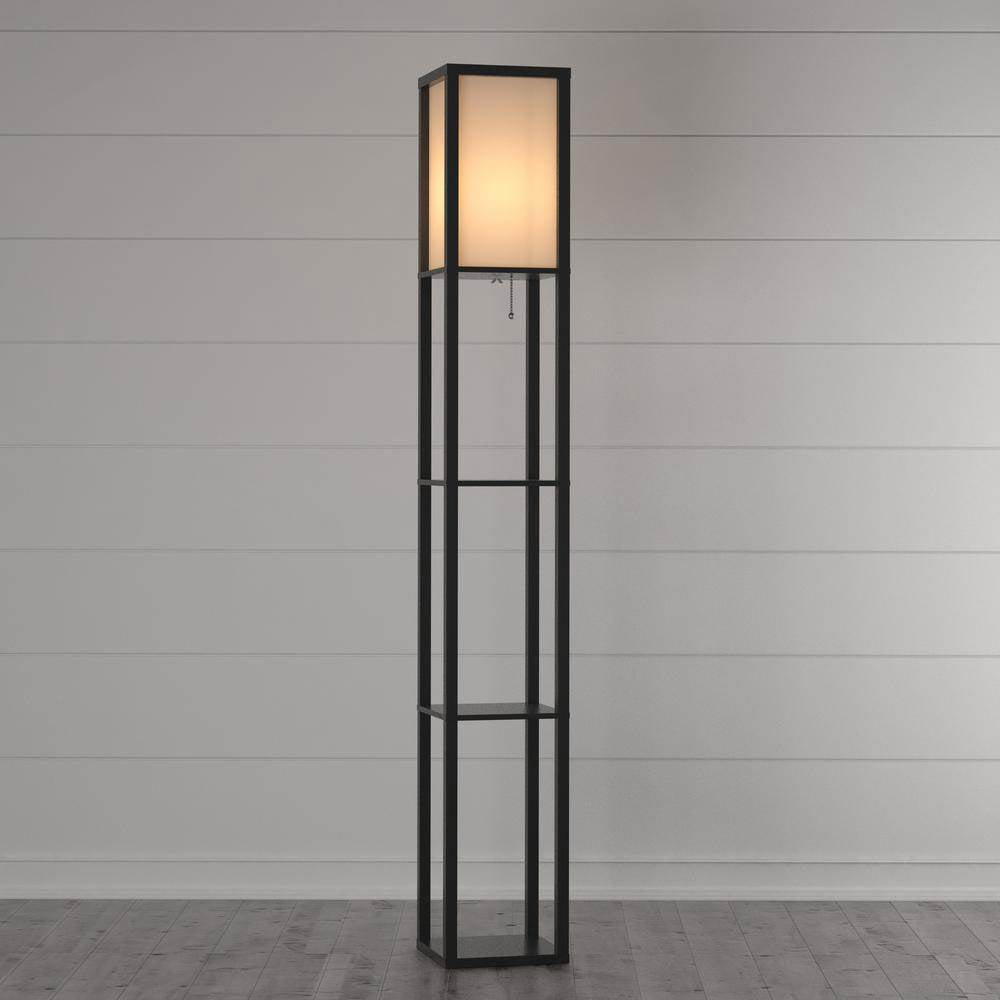 Uniquely designed this Adesso Home Titan 72 Inch Modern Column Floor Lamp not only creates a beautiful warmth of light but also creates depth of storage and style so you can display all your favorite decor items in one place. This shelf floor lamp stands at 72 inches tall perfect for small or larger spaces. The black MDF veneer open box frame supports 3 shelves for display and storage purposes. Complemented by an off white collapsible square cotton shade, work together to create seamless design unity. Add design and convenient storage to your space with the Adesso Home Titan 72 Inch Modern Column Floor Lamp.