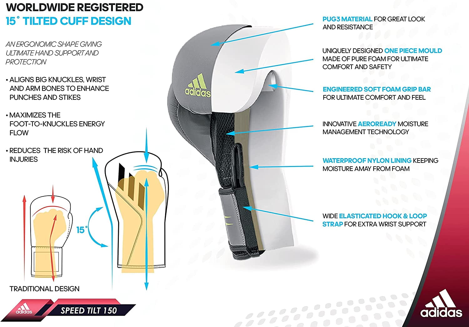 Adidas Speed TILT 150 Boxing Gloves – Training and Fighting Gloves for Men, Women, Unisex, Red/Black/Grey, 10oz