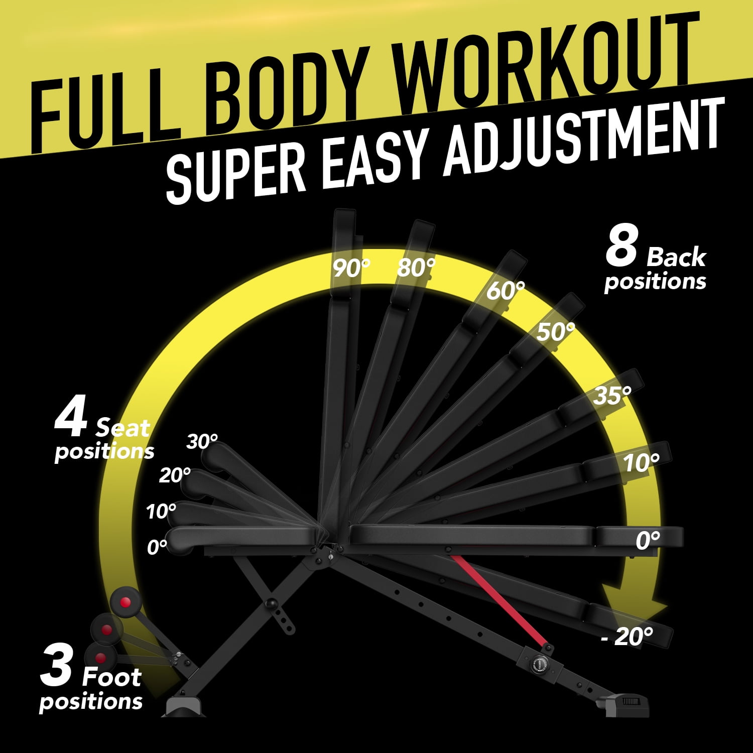 Keppi Adjustable Weight Bench for Full Body Strength Training, 900LB Foldable Workout Bench Press for Home Gym