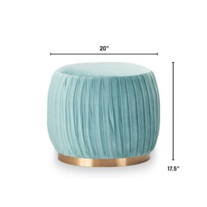 Adore Decor Jolie Round Velvet Ottoman with Pleated Upholstery, Seaglass Teal