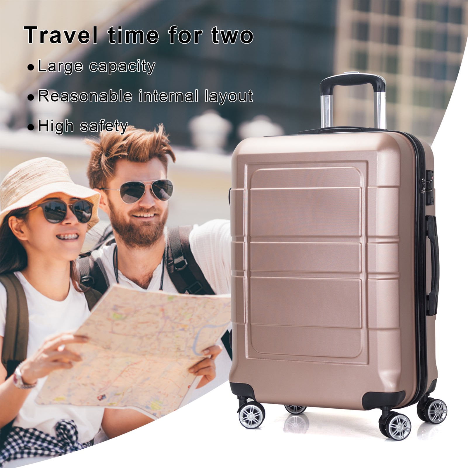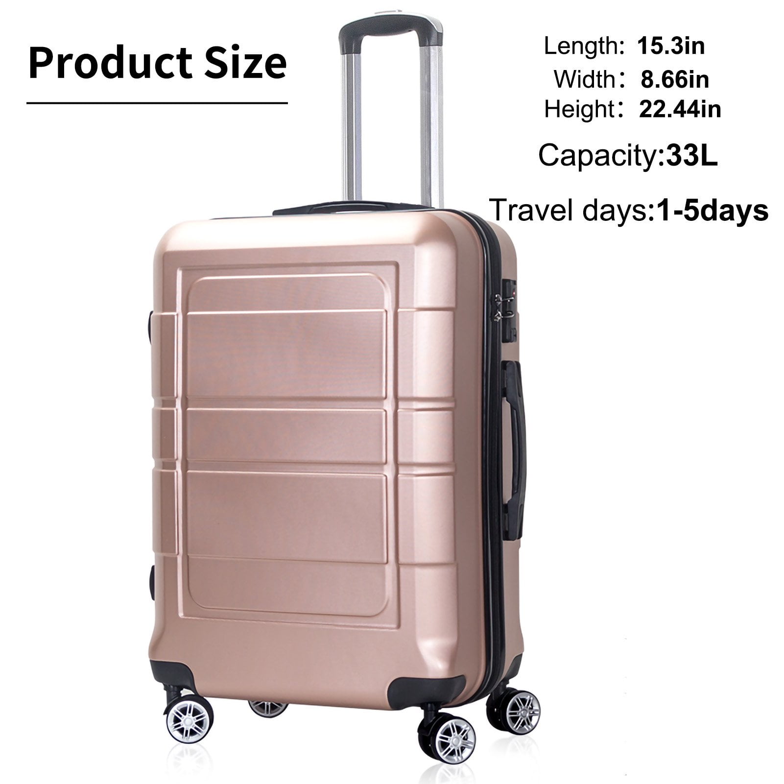 AEDILYS 20 Inch Carry On suitcase is here to help you make the most out of your traveling experience, using highly tested materials to guarantee the durability and reliability of each suitcase. Zippered compartment on one side and tie-down straps on the other side for easy packing. These lightweight luggage sets have smooth gliding self-repairable oversized zippers. Get more from your luggage, perfect for business and family trips. Our carry-on is designed to be accepted by most airlines onboard and has the perfect interior for overnight capacity and weekend getaways. 20 inch suitcase suitable for carrying onto the plane. Size: L22in* W8in* H14in Weight: 5lbs Travel days:1~4days Features: — Lightweight ABS engineered material with brushed finish. The hard-flex construction offers maximum strength, durability and a water/scratch resistant finish. — 4 dual spinner 360° silent wheels for effortless mobility — Full interior fabric lining with zippered compartment on one side and snap-on straps on the opposite side for easy packing — Built-in 3 digit TSA approved combination lock — Top and side ergonomic GEL handles for comfortable and easy lifting — Push Button Locking internal retractable trolley system — Smooth gliding oversized zippers