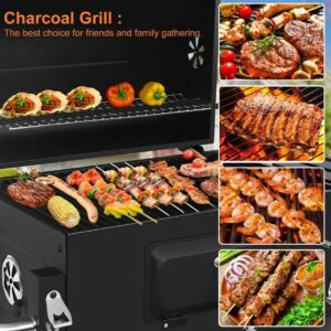AEDILYS 25 inch Charcoal Grill Outdoor Smoker with Side Tables, for BBQ