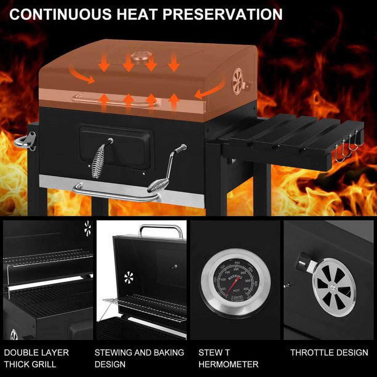 – Large Grilling Space: A total of 456.28 sq. inches grilling space, 106 sq. inches stainless-steel warming rack for the perfect smoking experience and could grill food for more than 10 people at one time.