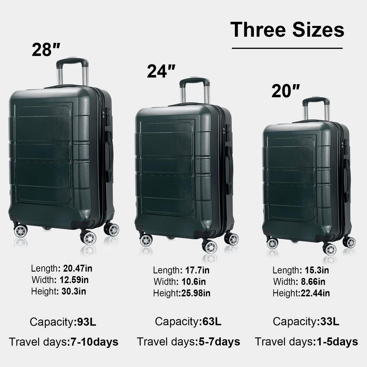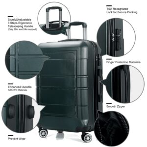 AEDILYS 3 Pcs Hardside Luggage Set, with TSA Lock and 20 /24 /28 Luggage Bags, Dark Green