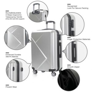 AEDILYS 3 Pcs Hardside Luggage Sets with TSA Locks and Durable Spinner Wheels Suitcase(20/24/28), Silver