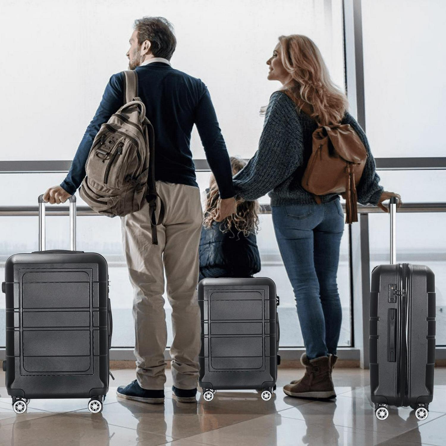 AEDILYS 3 Piece Luggage Sets, ABS Hardside Suitcase Set, TSA Lock, Black