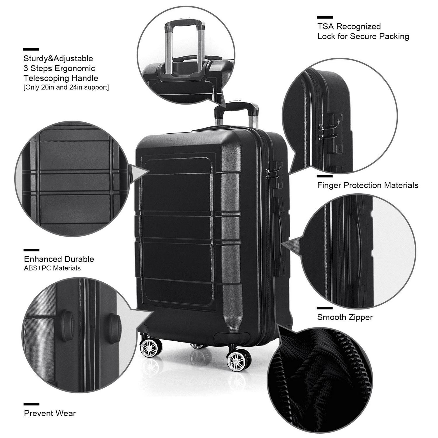 – [Top Quality Materials] : Made of brand new extra-thick PP materials for hard shell, which make the luggage more durable, lighter and impact-resistant. Features textured finish to prevent against scratches, keeping cases beautiful after a trip. 20in is best carry on luggage for airplane (not expandable), 24 inch and 28 inch luggage (maximize your packing power), Best choice for long-term travels and business trips.