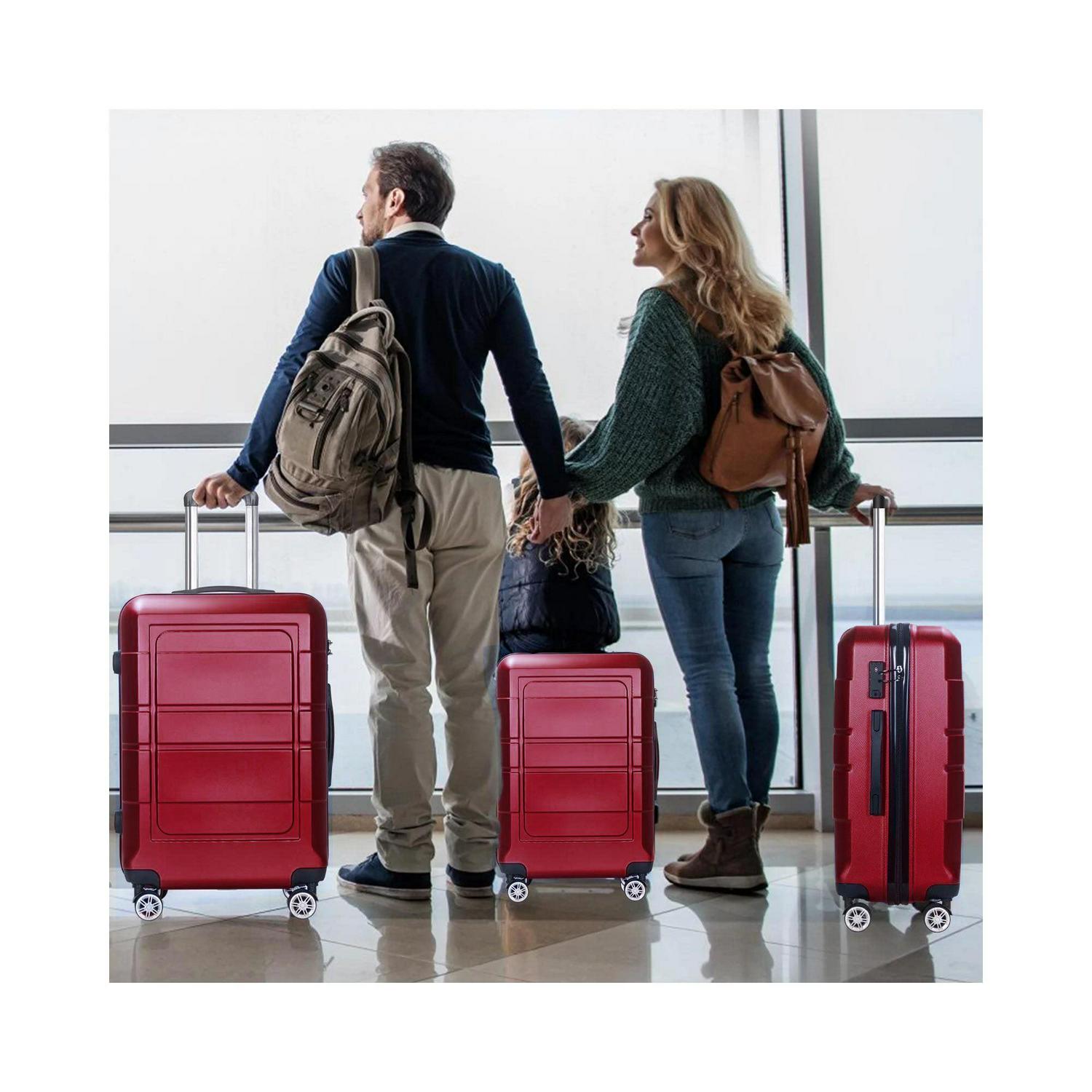 AEDILYS 3 Piece Luggage Sets, ABS Hardside Suitcase Set, TSA Lock, Red