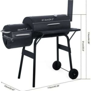 – Tasty Smoke Flavors: The offset smoker is firmly attached to grill to ensure good circulation of heat and smoke. Easy to open side door to add charcoal and remove ashes; air vent stokes fire instantly.
