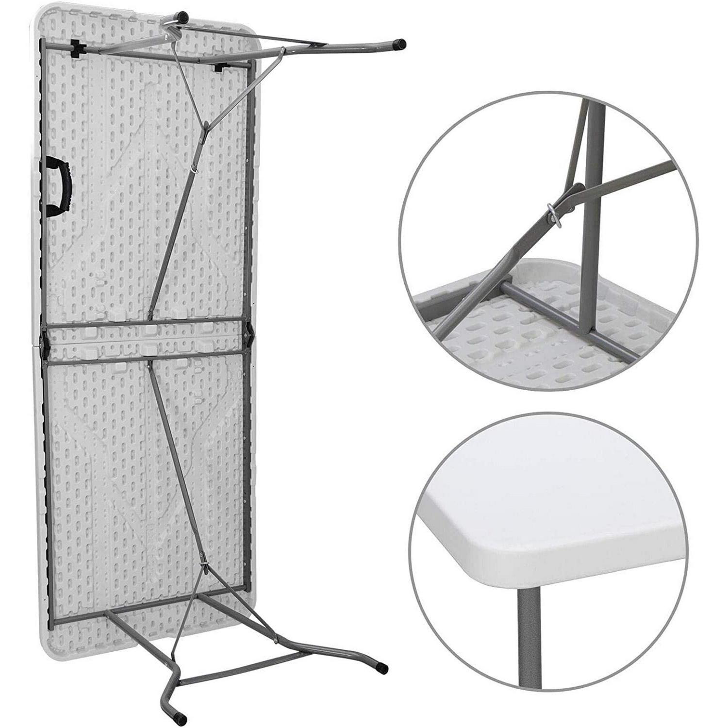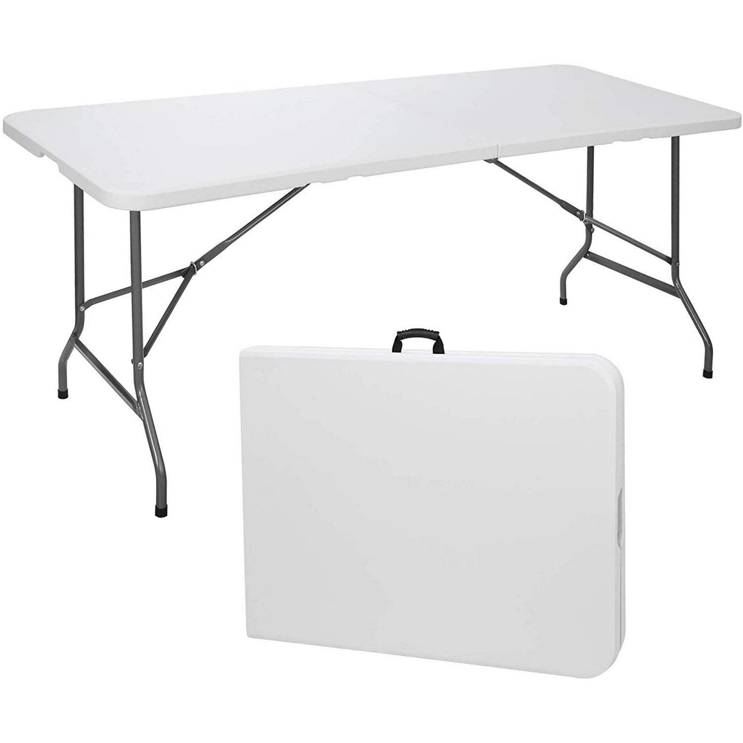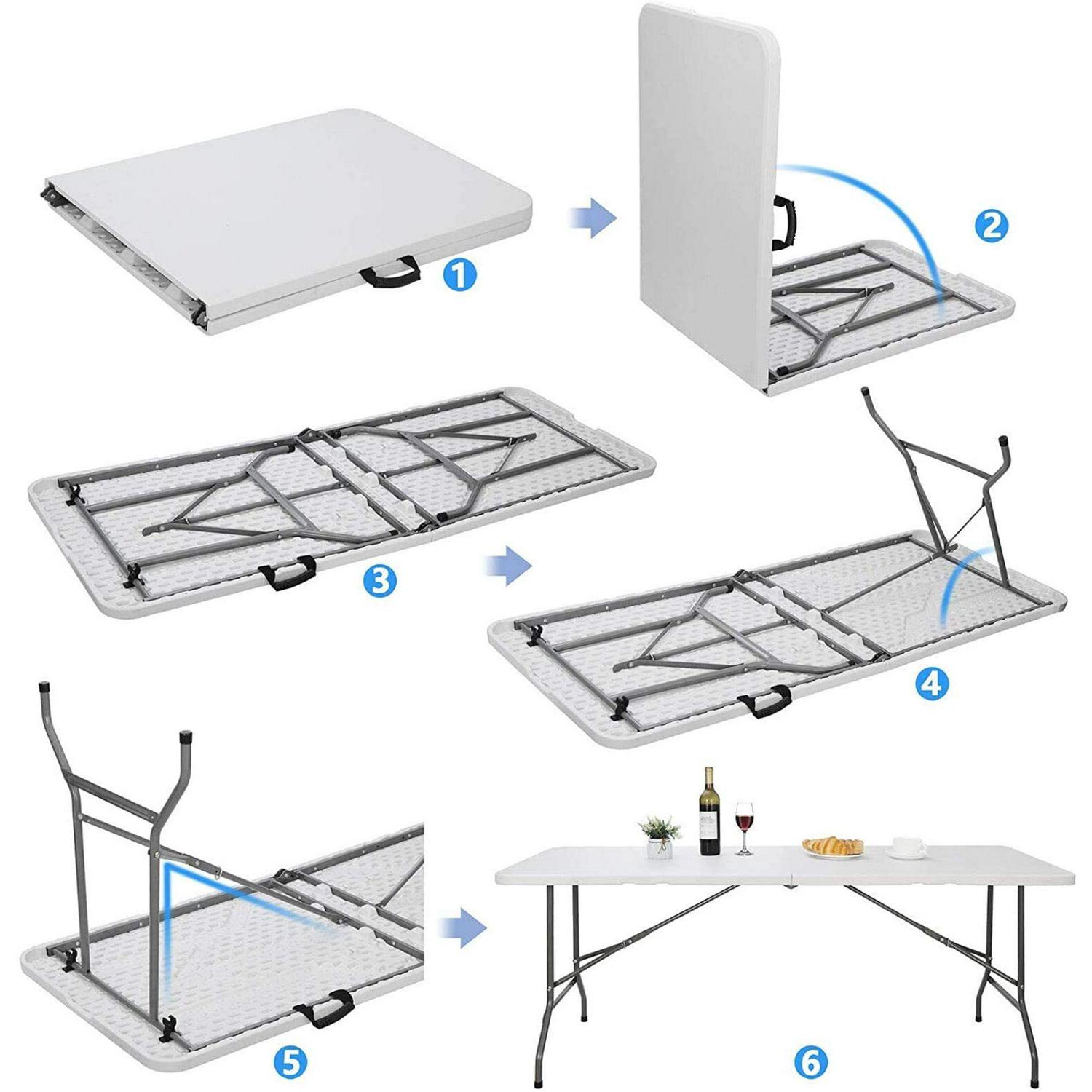 AEDILYS 6Ft Portable Multipurpose Fold In Half Table, Which Is Ideal For Family Reunions, Picnics, Camping Trips, Buffets Or Barbecues. It Resists Spills And Weather And Sturdy Easy To Clean.Because Of Its Foldable Top And Legs, It Can Saves Space And Time As Well As Convenient To Transport And Store.