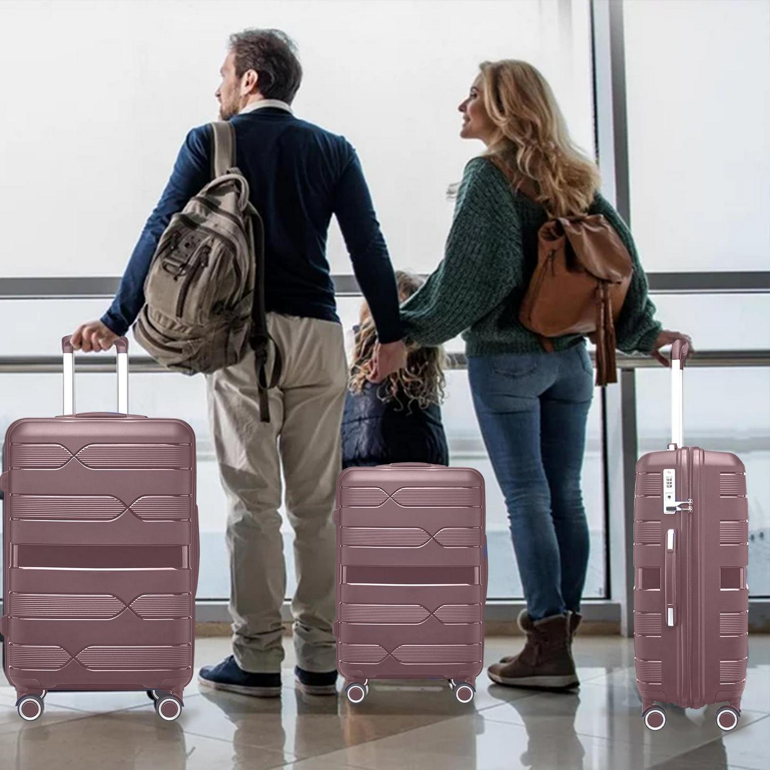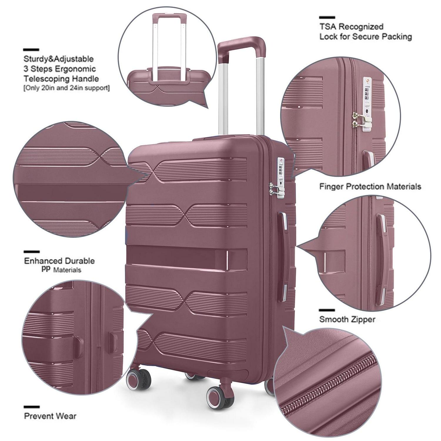 AEDILYS Lightweight Hardside Luggage Set 3 Piece – TSA Lock Spinner Wheels – Carry On to Checked Bags – 360A Mobility.Rose Gold
