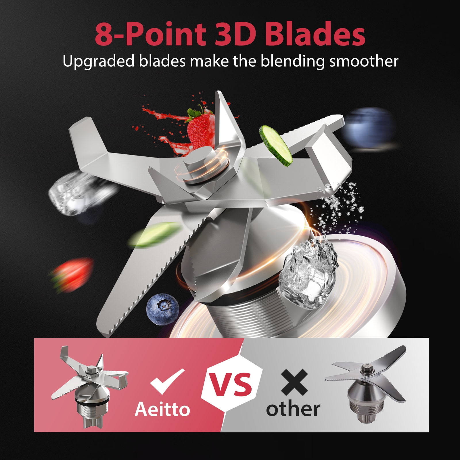 🍹【𝟯-𝙋𝙧𝙚𝙨𝙚𝙩 𝙁𝙪𝙣𝙘𝙩𝙞𝙤𝙣𝙨】 Aeitto blender incorporates ice crush, smoothie and juice 3-preset functions to help you complete the blending task automatically. 7-speeds can also meet the needs of making a variety of food. 🥭【𝙃𝙞𝙜𝙝 𝙎𝙥𝙚𝙚𝙙 𝙈𝙤𝙩𝙤𝙧】 This blender for shakes and smoothies is equipped with a highest 1800 watt industrial-grade motor with a peak speed of 25000 RPM. Less heat, no odor, providing the smoothest taste. 🧊【𝙇𝙖𝙧𝙜𝙚 𝘾𝙖𝙥𝙖𝙘𝙞𝙩𝙮】Designed for large families and commerce, the blenders for kitchen for smoothies/ice has 68oz large capacity jar that can serve up to 6 people at a time. 🍊【𝟴 𝙋𝙤𝙞𝙣𝙩 𝟯𝘿 𝘽𝙡𝙖𝙙𝙚𝙨】 Upgraded 8-point blades of blenders for kitchen break fruits, vegetables, ice and seeds more delicately to extract maximum nutrients and vitamins. 🍨【𝙀𝙖𝙨𝙮 𝙩𝙤 𝘾𝙡𝙚𝙖𝙣】 The smoothie blender jar is dishwasher safe or you can just add water and stir to clean. It’s very easy to clean.