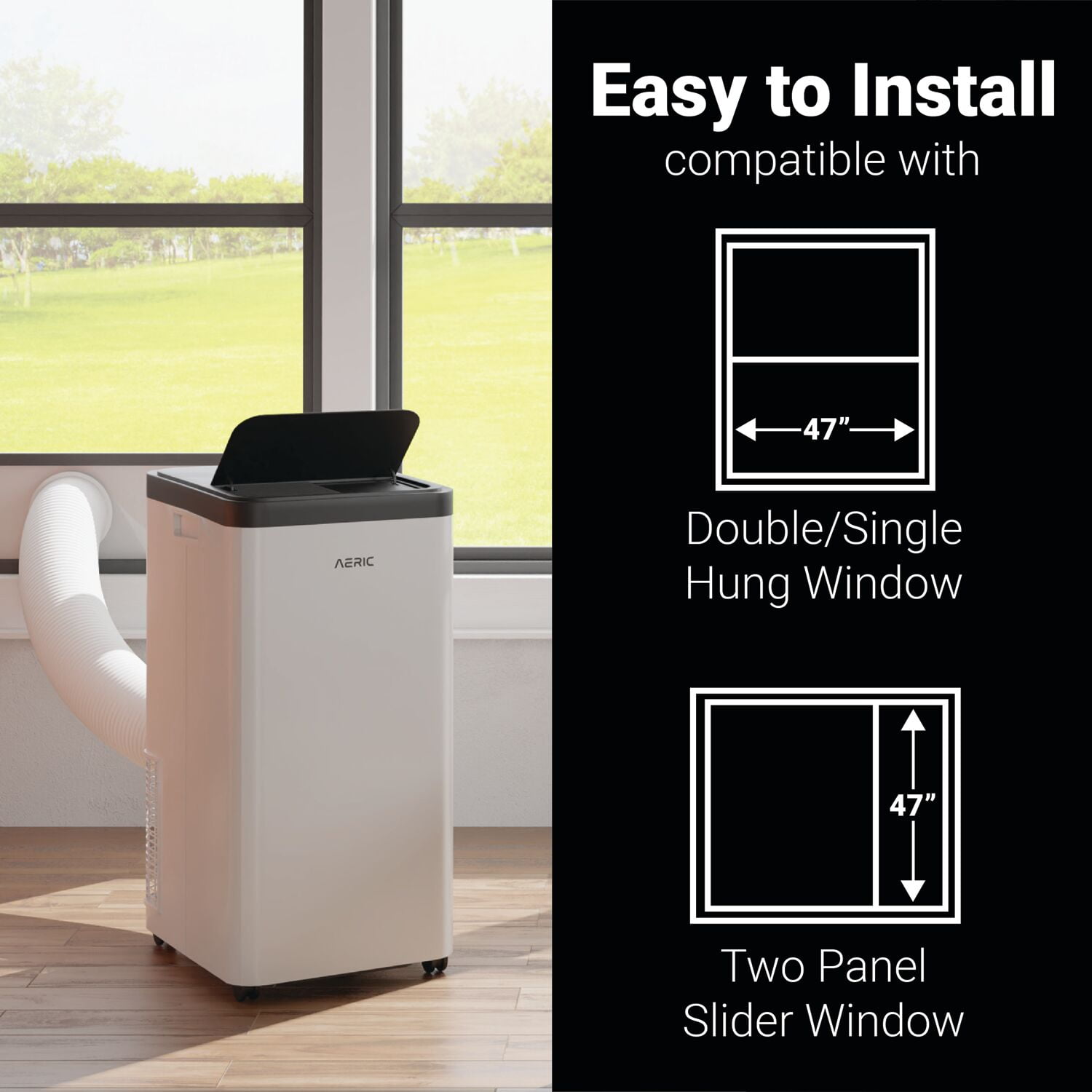 Here at Aeric, we believe in reliable and high quality home comfort. That’s why all our products are backed by our leading 2-year warranty. The Aeric new 8,000 BTU Portable Air Conditioner, 12,000 BTU ASHRAE standard, is the perfect cooling option for any home looking for extra comfort or to use less central ac. Ideal cooling for rooms, such as: bedrooms, home offices or living rooms. Doubling as a dehumidifier, this unit will remove up to 85 pints of moisture from your home per day. Designed with an auto-evaporation system, the unit condensates water recycled inside to keep cooling efficiently. Equipped with options tailored to your cooling preferences, the Aeric portable unit has 3 air flow speeds, plus full auto-swing air louvers for effective air movement while in use. The up to 24-hour timer gives you the option to set your unit to only run when you need it the most or set the unit to turn off during the night for a peaceful rest. Aeric 8,000 BTU SACC (12,000 BTU ASHRAE) Portable Air Conditioner, Up to 550 Sq ft, AERP081AW