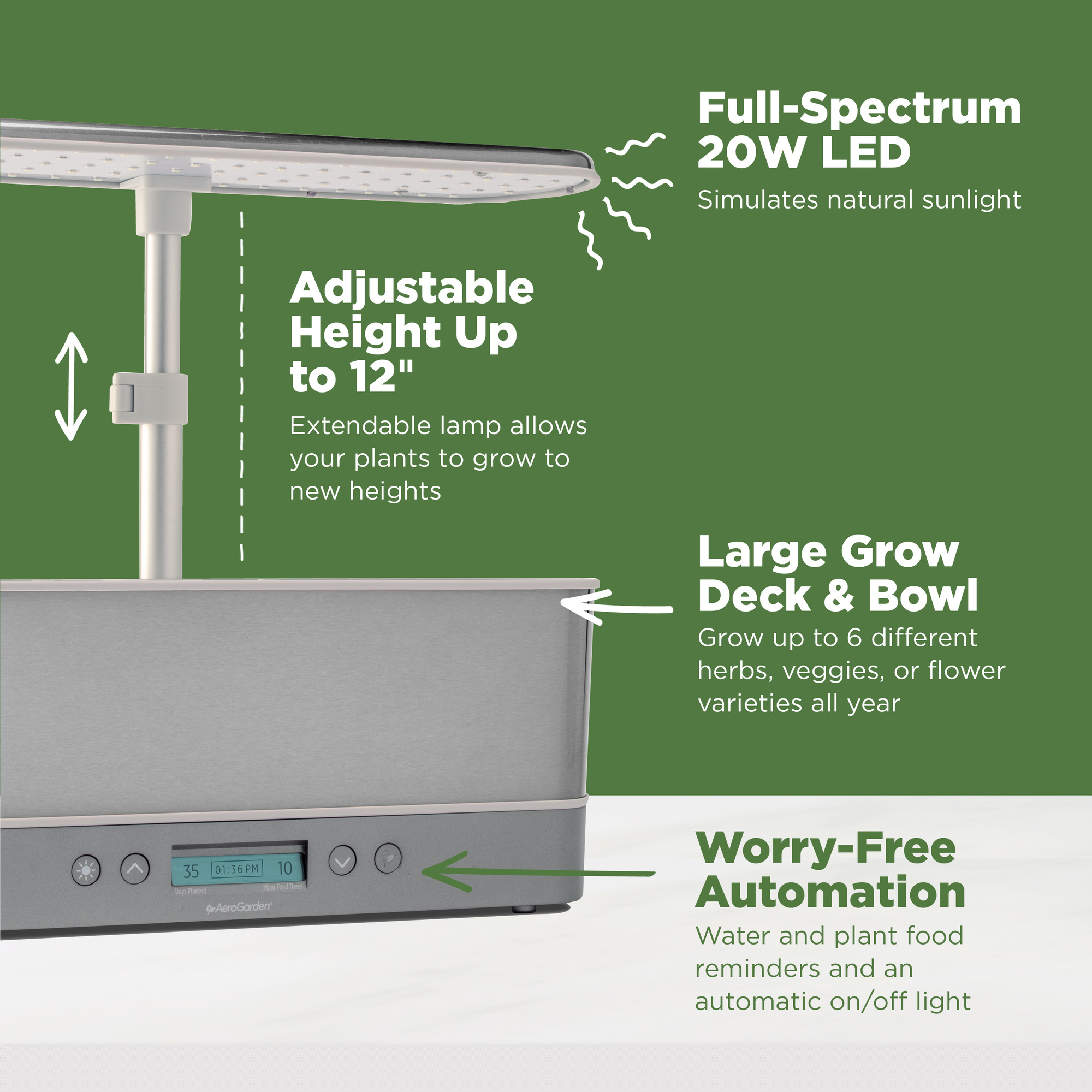 - Grow up to 6 different herb, veggie or flower varieties year-round with our countertop indoor garden
