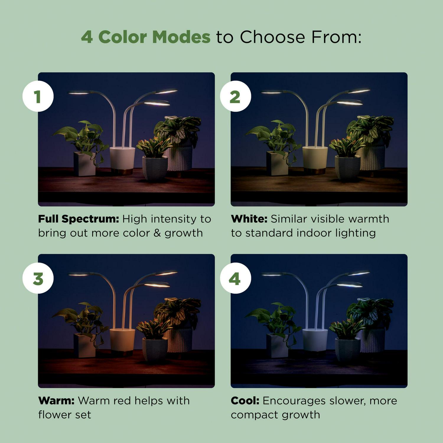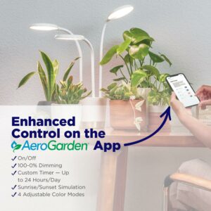 – Easily customize your smart grow light via the AeroGarden app, with features including custom light schedule, dimming capabilities, sunrise/sunset setting, and four adjustable Light Modes