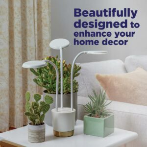 AeroGarden Grow Lights bring the strength of the sun’s light indoors by generating full-spectrum LED light to help your houseplants grow and stay healthy, even in the darkest areas of your home, all year round. The distinctive Trio Grow Light features three arms so you can shine light on multiple houseplants up to 12 inches tall. Not to mention, its functional, modern design integrates seamlessly into any space as a reliable source of light for your plant, a comforting, ambient light for you, and a stylish element of décor. The Trio Grow Light is smart, too. Simply connect the light to the AeroGarden app to unlock custom features. Turn your lamp on and off remotely, or set a customized light schedule with its automatic timer. Take the light from bright to dim with its dimming capabilities, or change up the vibe with one of four light modes: full-spectrum, white, warm, and cool. The AeroGarden Trio Grow Light is just what your plants need for a happy, healthy life.