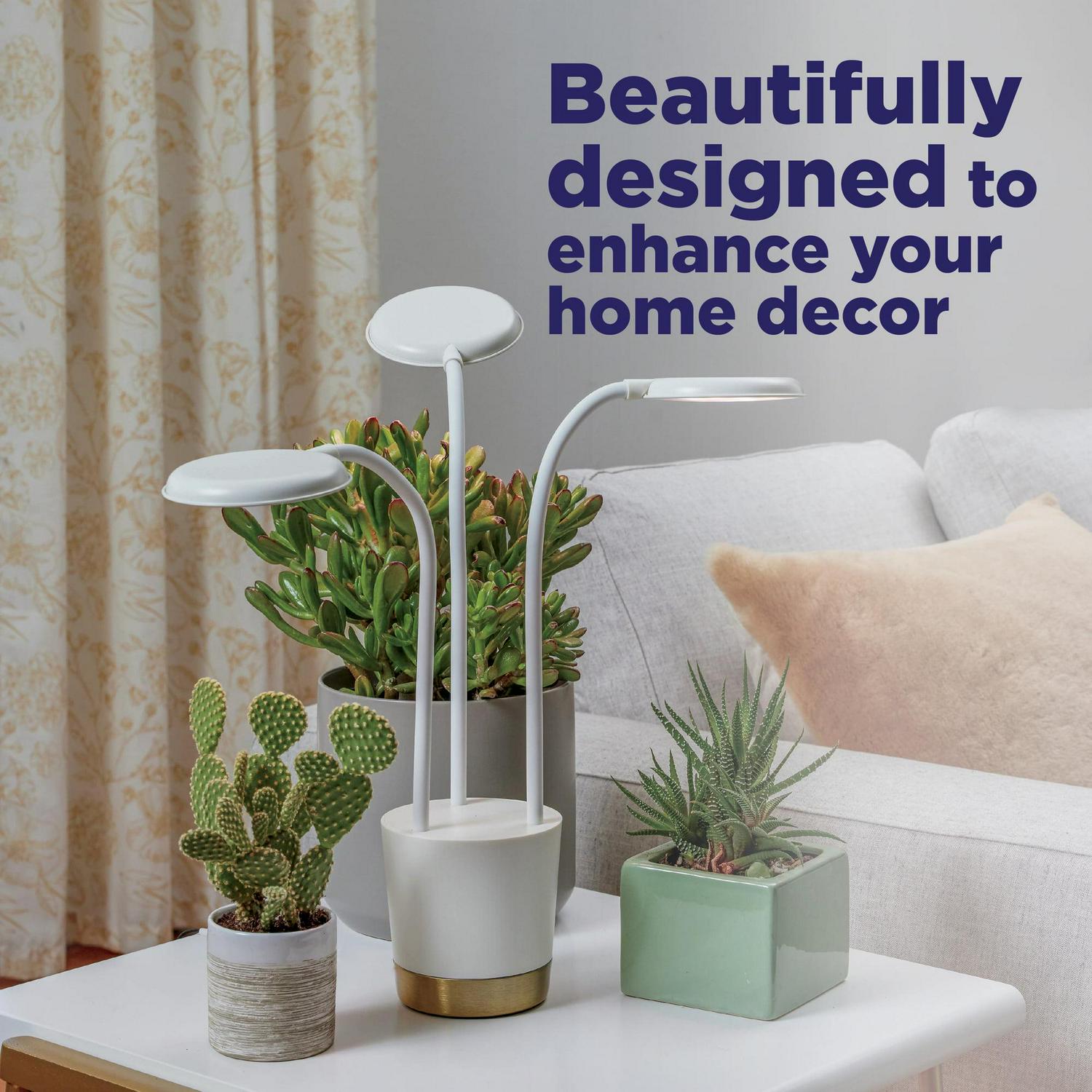 – The distinctive, three-armed design of the Trio Grow Light allows you to shine light on multiple houseplants