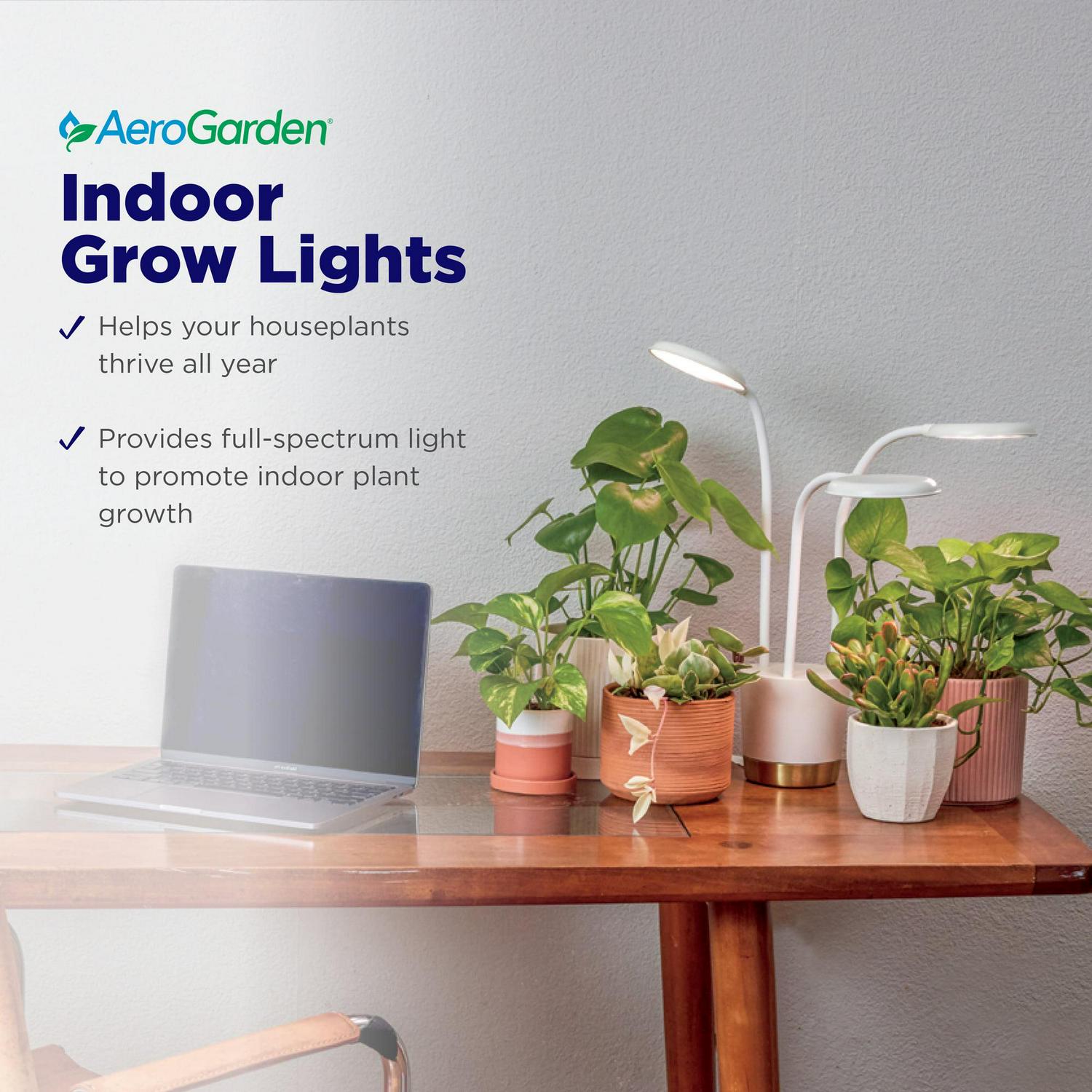 – No window, no problem – AeroGarden Grow Lights bring the strength of the sun’s light indoors by generating full-spectrum LED light to help your houseplants grow and stay healthy, even in the darkest areas of your home, all year round