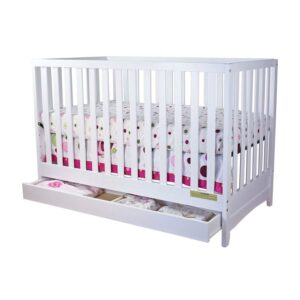 – B>Efficient Storage Solution:/B> The under-crib large drawer is a practical addition offering extra storage space for your baby’s essentials helping you keep the nursery organized and clutter-free.