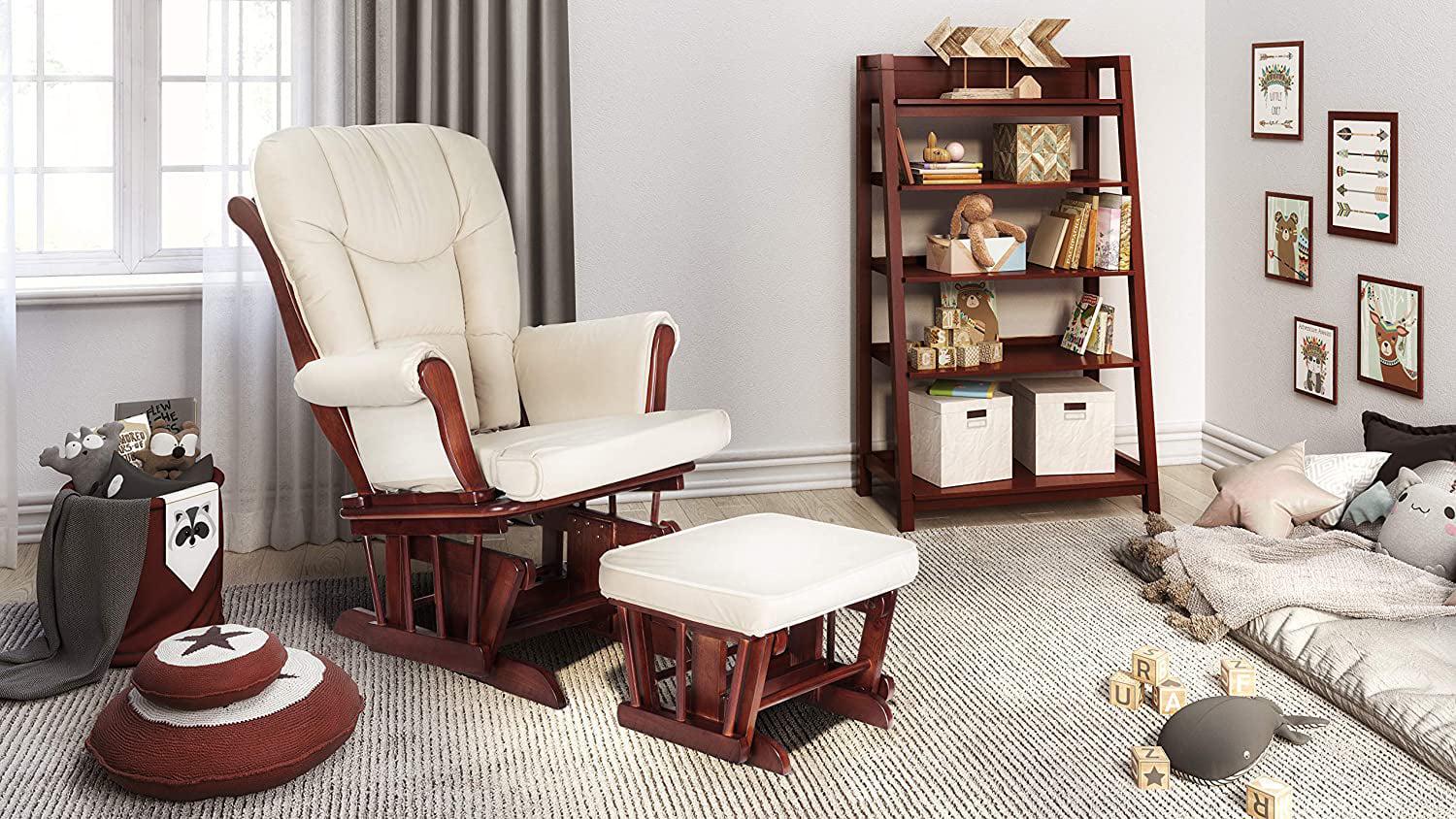 With its thick padding and solid wood construction, this AFG Baby Furniture Sleigh glider chair with an ottoman serves as a cozy seat for you and your little one. Offered in multiple finish options to complement your little one’s nursery decor, it’s equipped with steel ball bearing glides for smooth, quiet rocking. A thoughtful gift for expecting parents, this chair and ottoman set are perfect when parents want to soothe a fussy baby or when they just want to spend quiet time with their bundle of joy.
