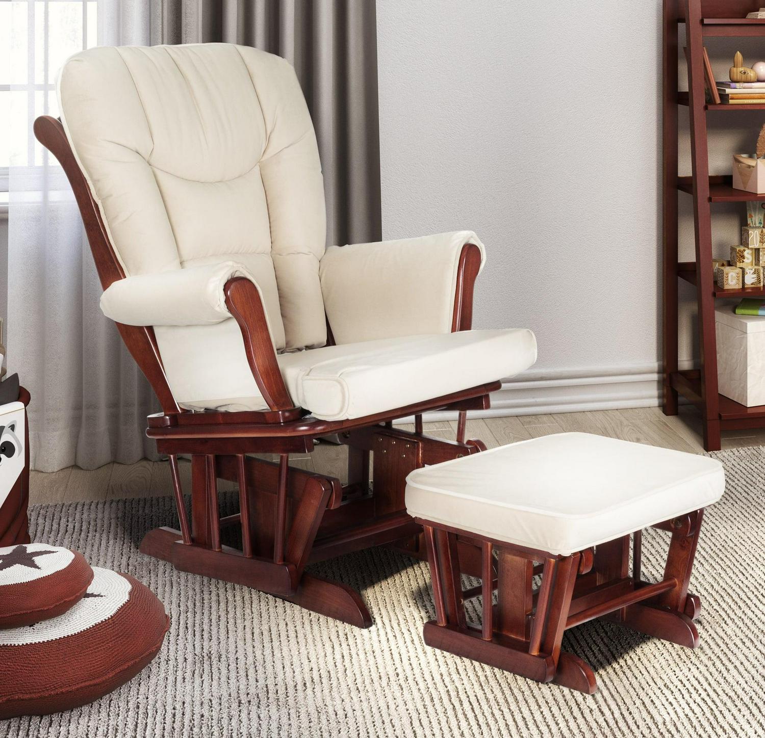 AFG Sleigh Glider Chair and Ottoman, Espresso with Beige Cushion