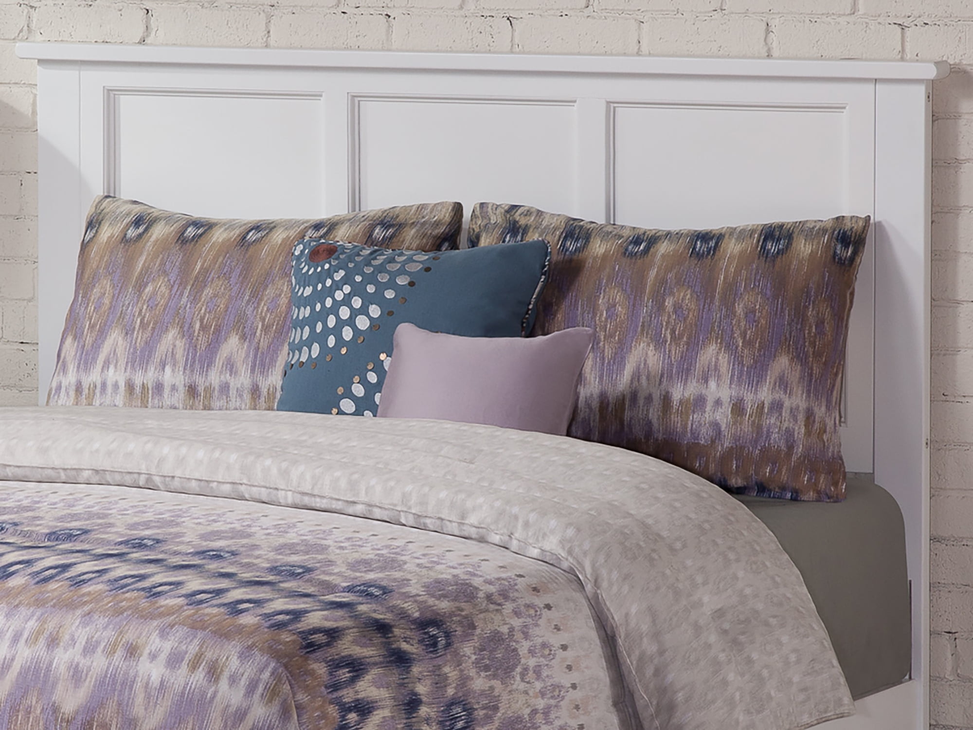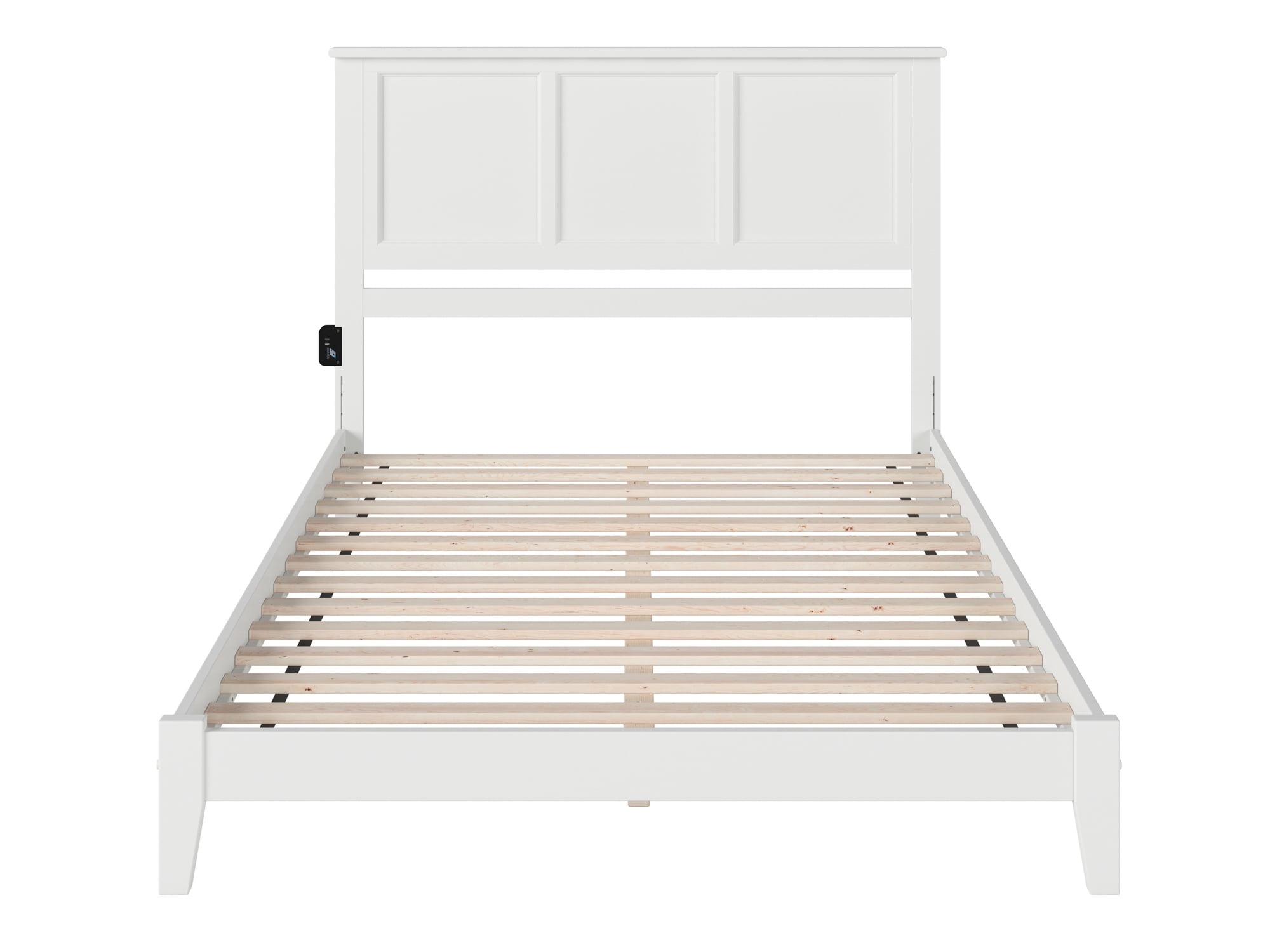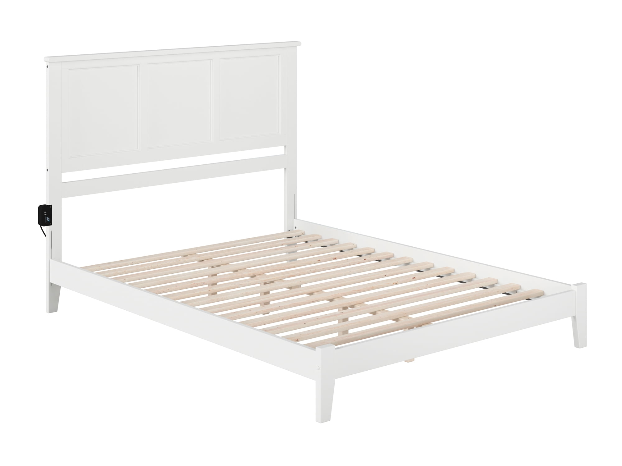 AFI Madison King Low Profile Wood Platform Bed Frame with Panel Headboard in White Low Profile, King size bed, crafted from Solid Hardwood Traditional Headboard That Will Last A Lifetime: Sturdy, Solid Wood Construction features simple, traditional panel design that will complement any room No Box Spring Needed: Designed for lasting durability, our slat kit supports your mattress to increase air flow for a more comfortable, cooler sleep Charging Station: Includes Surface Mount Turbo Charger, 6-foot cord, ETL listed, 18GA wire,2 USB Ports .5V/3.5A Recommended Mattress Height: 12″-14″ Assembled Dimensions: L:82.625” x W:80.75” x H:50” Weight Capacity: 800lbs