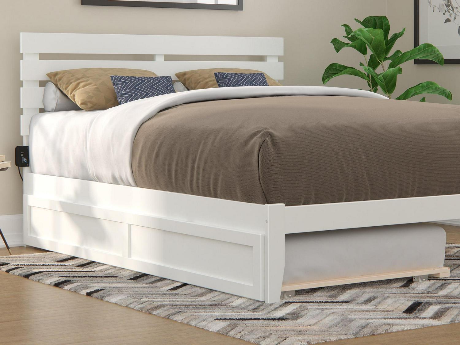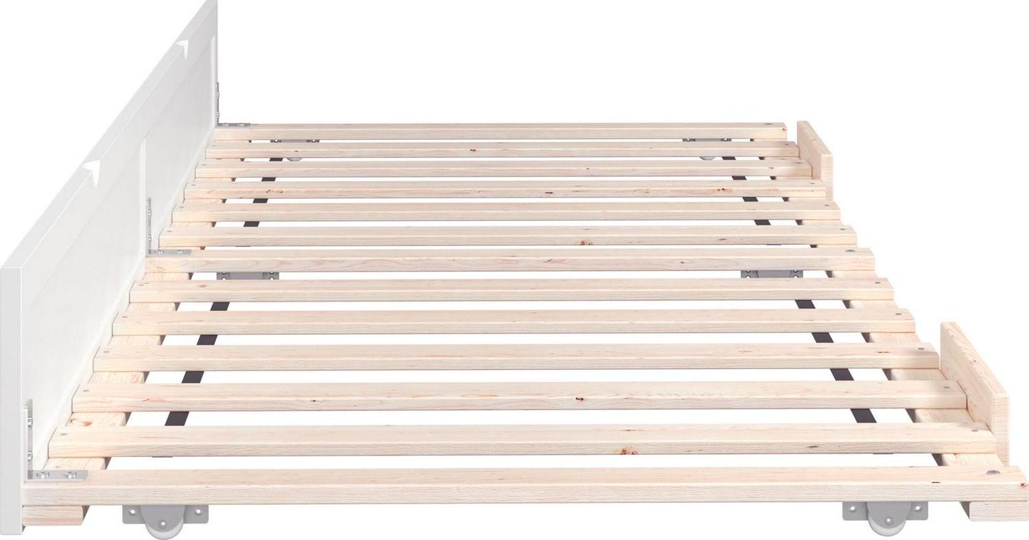 AFI Twin XL Roll Out Wood Trundle Bed Frame with Wooden Slat Supports, White