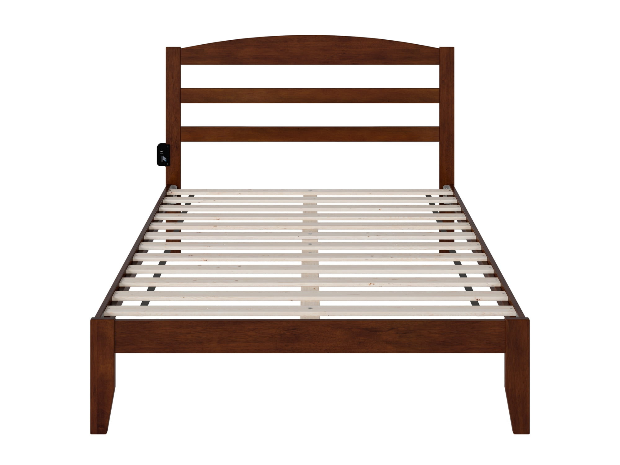 AFI Warren 14″ Full Wood Platform Bed Frame with Slatted Headboard in Walnut Minimalist Mission Inspired Design Sturdy, solid wood construction features simple, mission inspired design that will complement any room Arched horizontal slat Headboard and bed frame feature solid hardwood and veneer construction with a non-toxic finish for lasting durability No Box Spring Needed: Designed for lasting durability, our slat kit supports your mattress to increase air flow for a more comfortable, cooler sleep Charging Station: Includes Surface Mount Turbo Charger, 6-foot cord, ETL listed, 18GA wire,2 USB Ports .5V/3.5A Assembled Dimensions: 76″L x 53.38″W x 41.38″H Weight Capacity: 800lbs