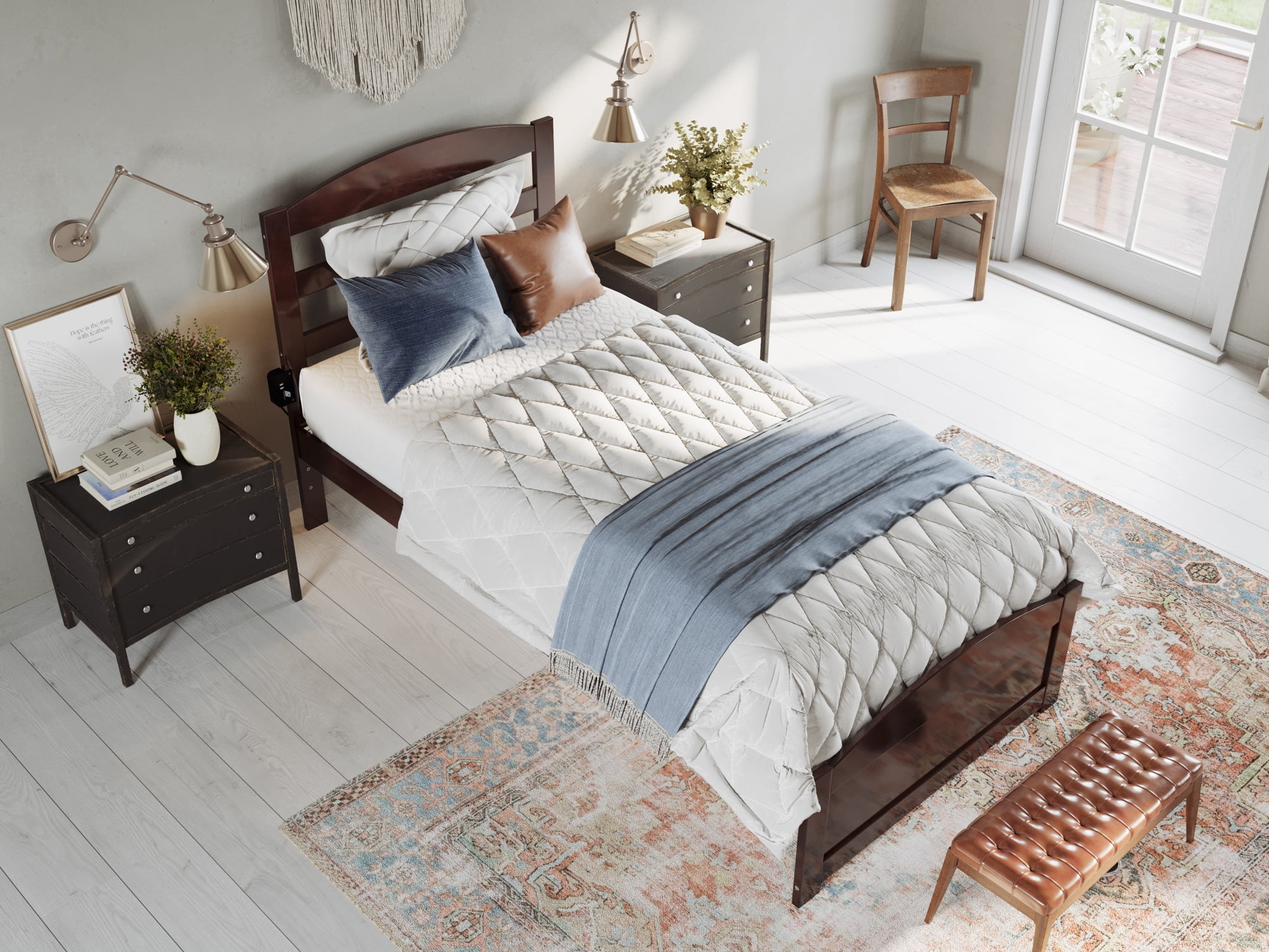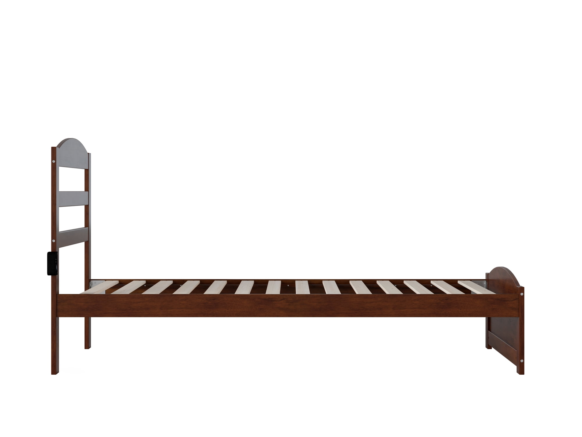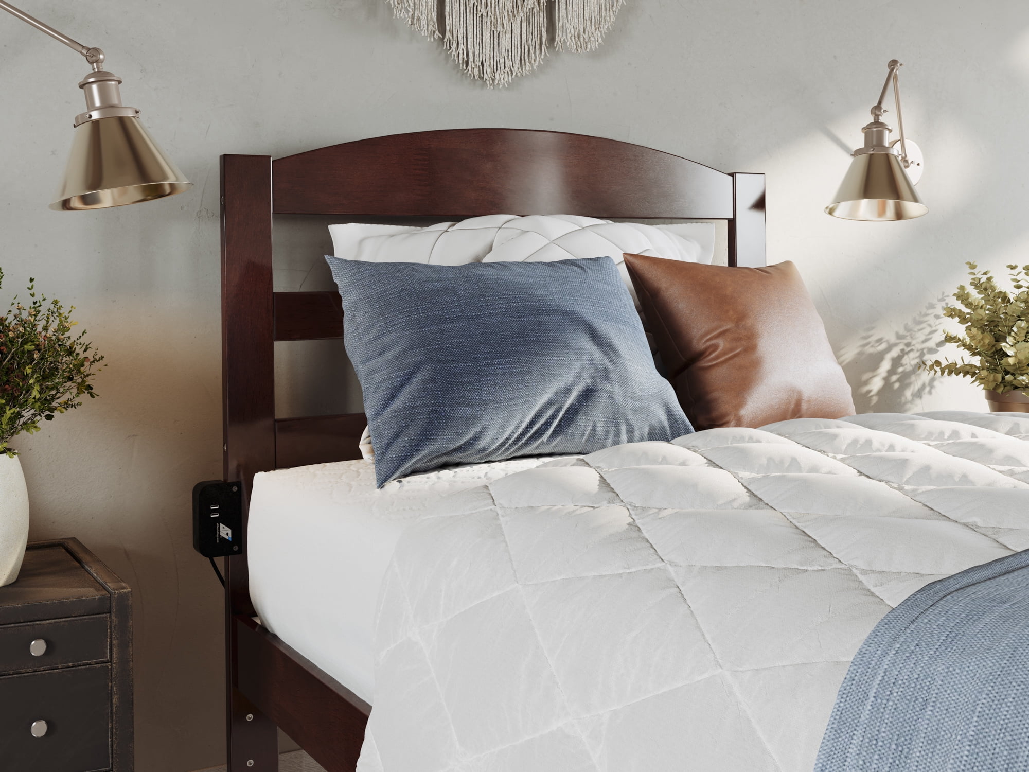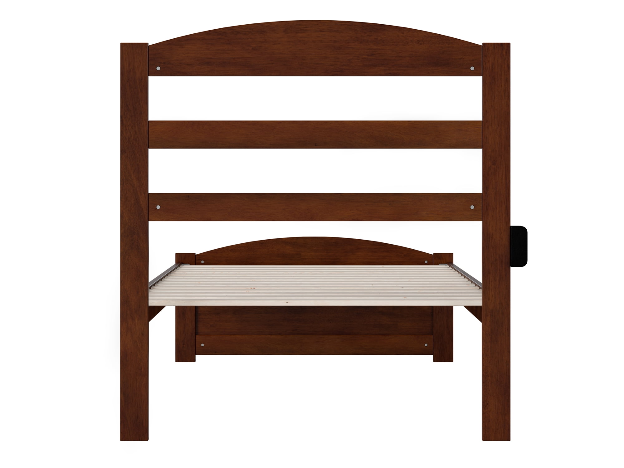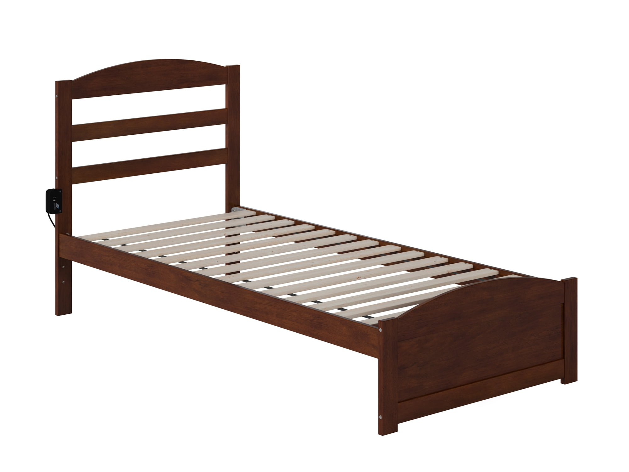 AFI Warren 14″ Twin XL Wood Platform Bed Frame with Headboard and Footboard in Walnut Minimalist Mission Inspired Design Sturdy, solid wood construction features simple, mission inspired design that will complement any room Arched Horizontal Slat Headboard, Footboard and Bed Frame: Features Solid Hardwood construction with a Non-Toxic Finish for lasting durability No Box Spring Needed: Designed for lasting durability, our slat kit supports your mattress to increase air flow for a more comfortable, cooler sleep Charging Station: Includes Surface Mount Turbo Charger, 6-foot cord, ETL listed, 18GA wire,2 USB Ports .5V/3.5A Assembled Dimensions: 81.5″L x 38.25″W x 41.38″H Weight Capacity: 600lbs