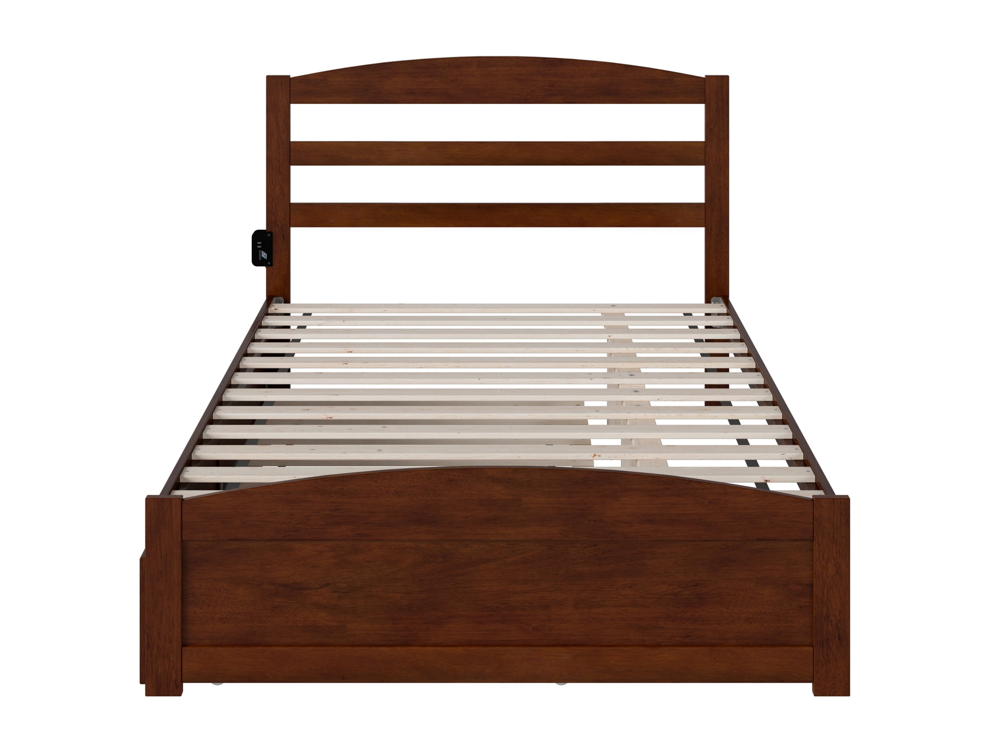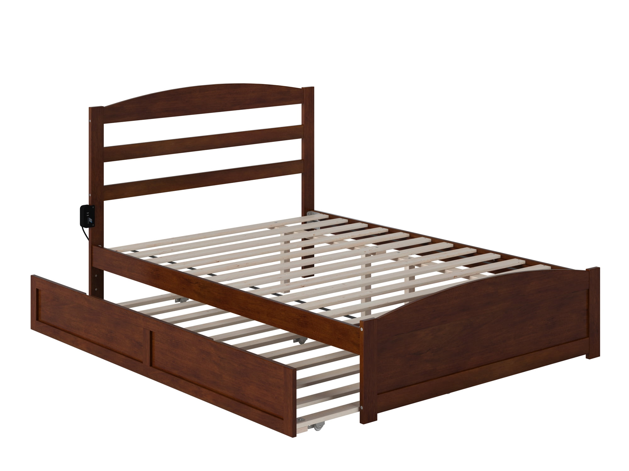 AFI Warren Full Wood Platform Bed with Headboard Footboard & Twin Trundle, Walnut