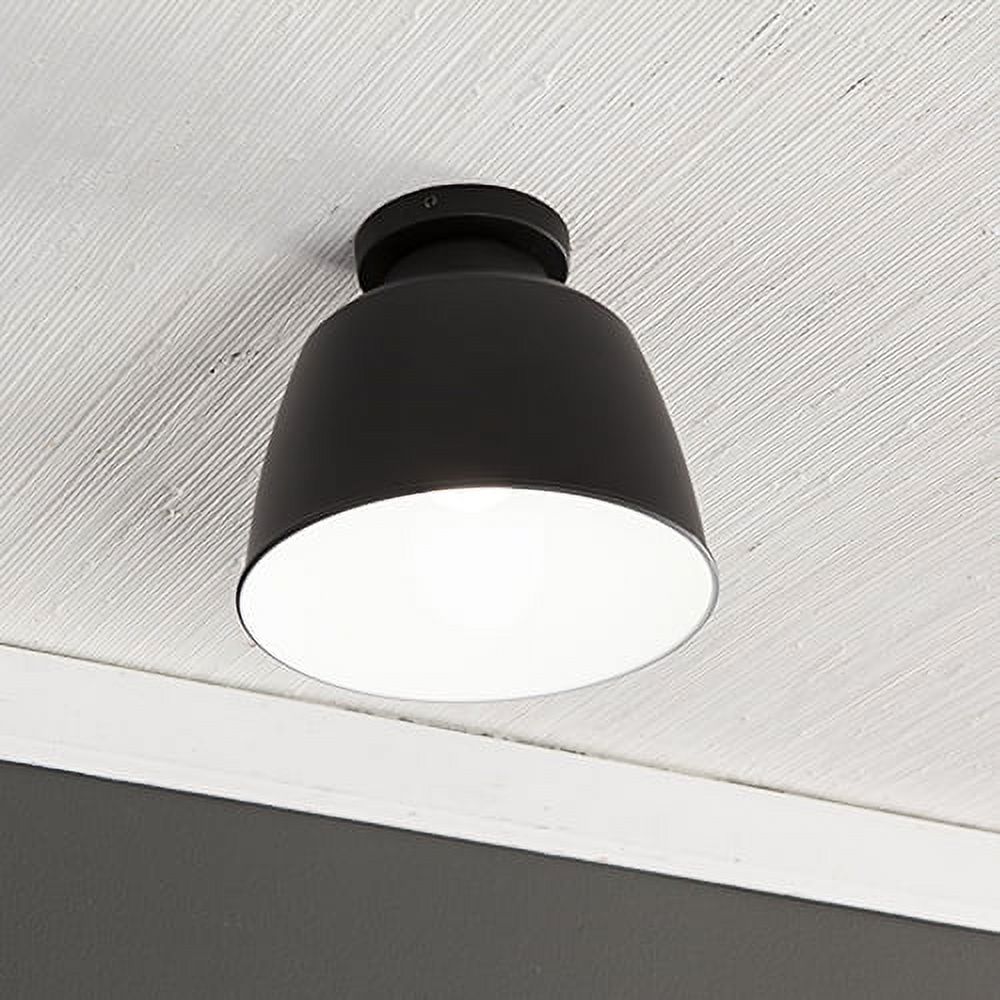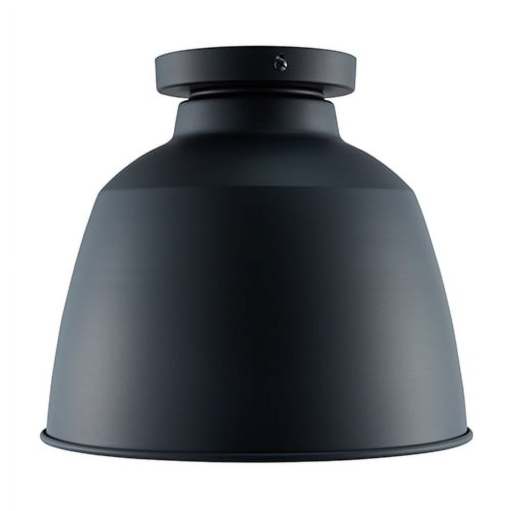• Metal dome pendant light • Close to ceiling look • Minimalist, monochromatic design • UL listed • Type A, E26 bulb base size • Max 60W incandescent or 13W CFL • Bedroom, dining room, hall/entry, or home office • Refined industrial style • Black finish • Overall: 10.25” W x 10.25” D x 9” H • Easy to assemble; professional installation recommended