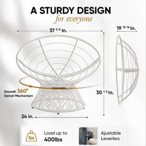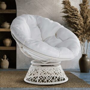 Aile 360 Swivel Comfy Papasan Chair with Fabric Cushion, Sturdy Metal Frame (Pure Pearl – White Frame)