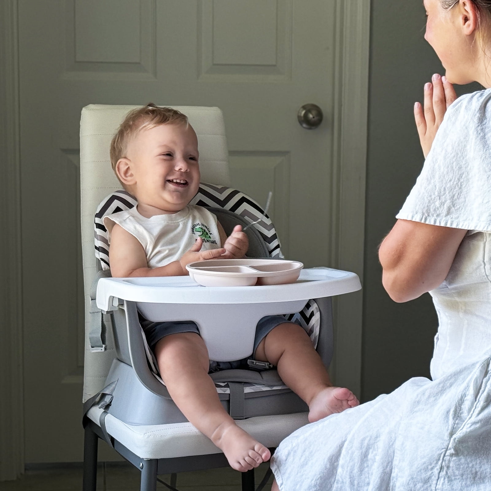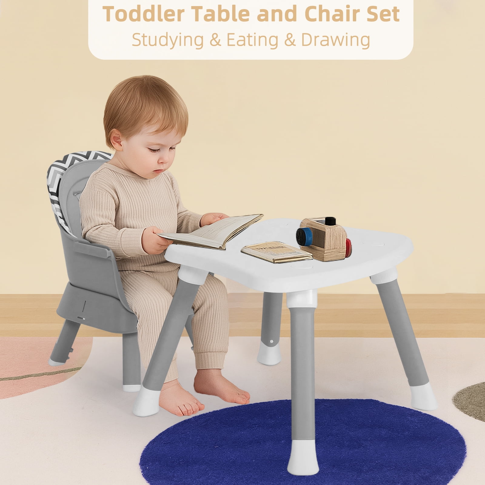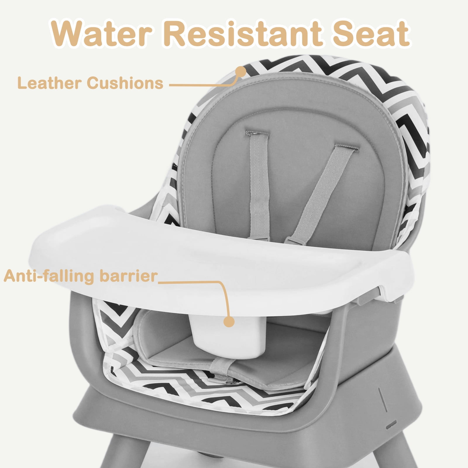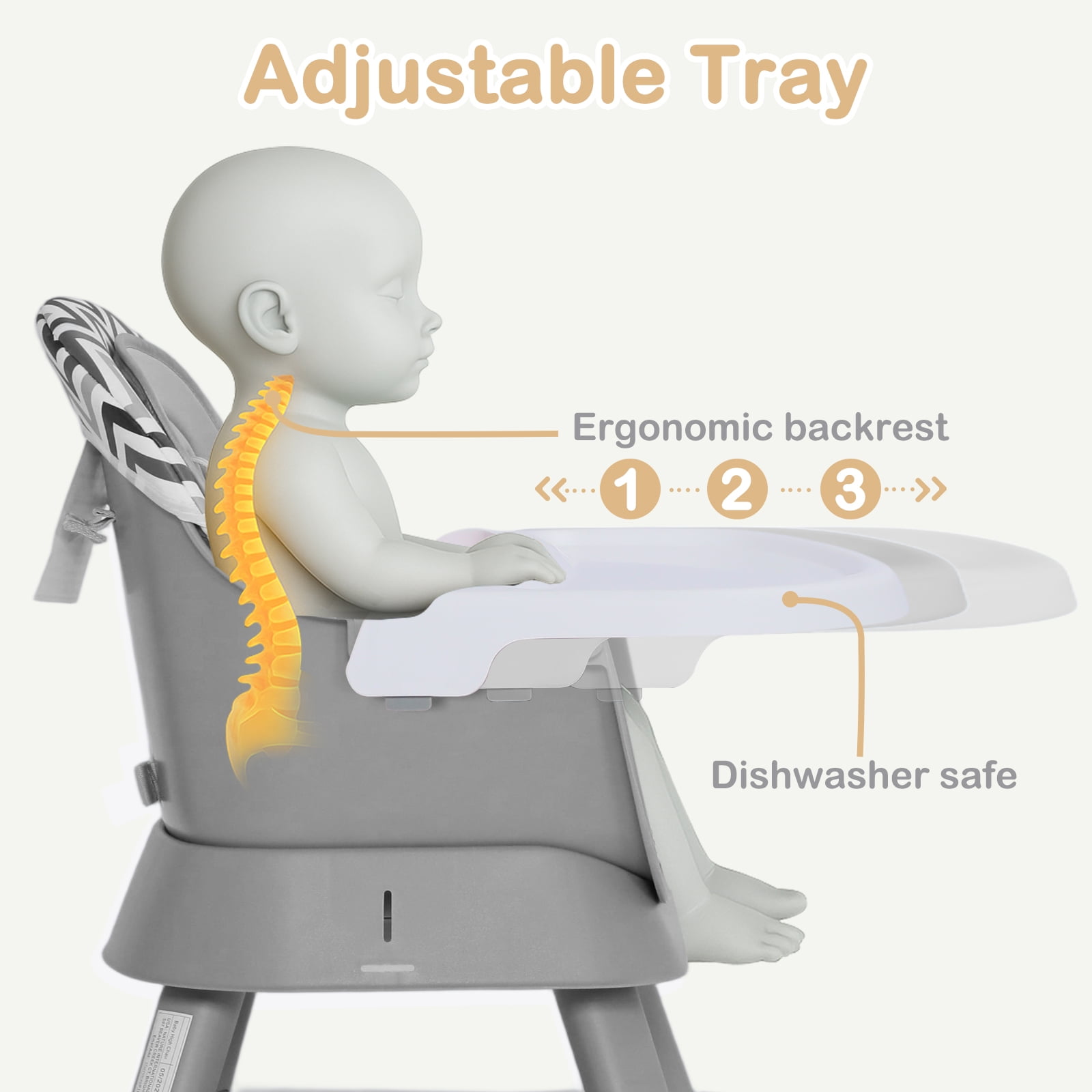 AILEEKISS 8 IN 1 baby highchair is made of high quality PP meterials, which is durable. Equipped with a 3-position adjustable tray, this infant high chair can meet the need of growing kids. And the tray without sharp points or edges can be cleaned with a dishwasher, providing maximum convenience for you. The unisex feeding chair is also the activity center for child to play with toys. Recommended age: 6-36months(55lbs)