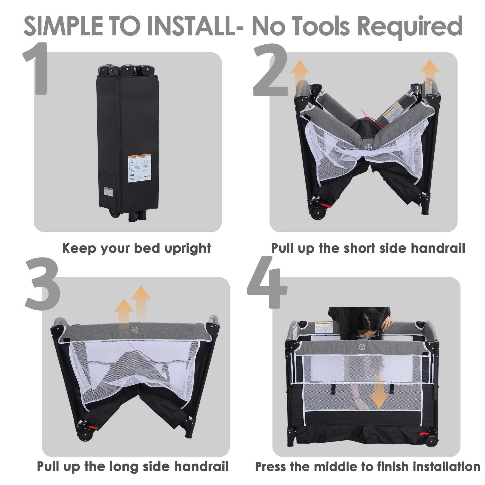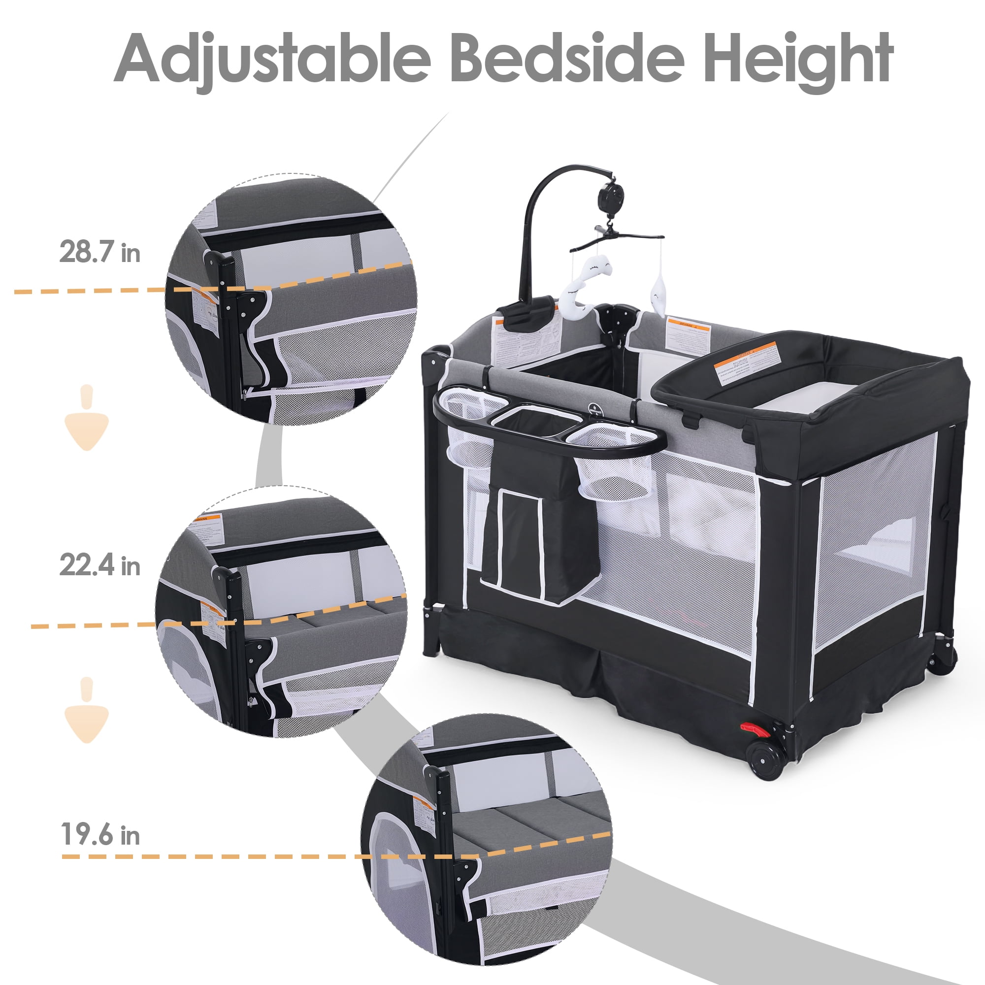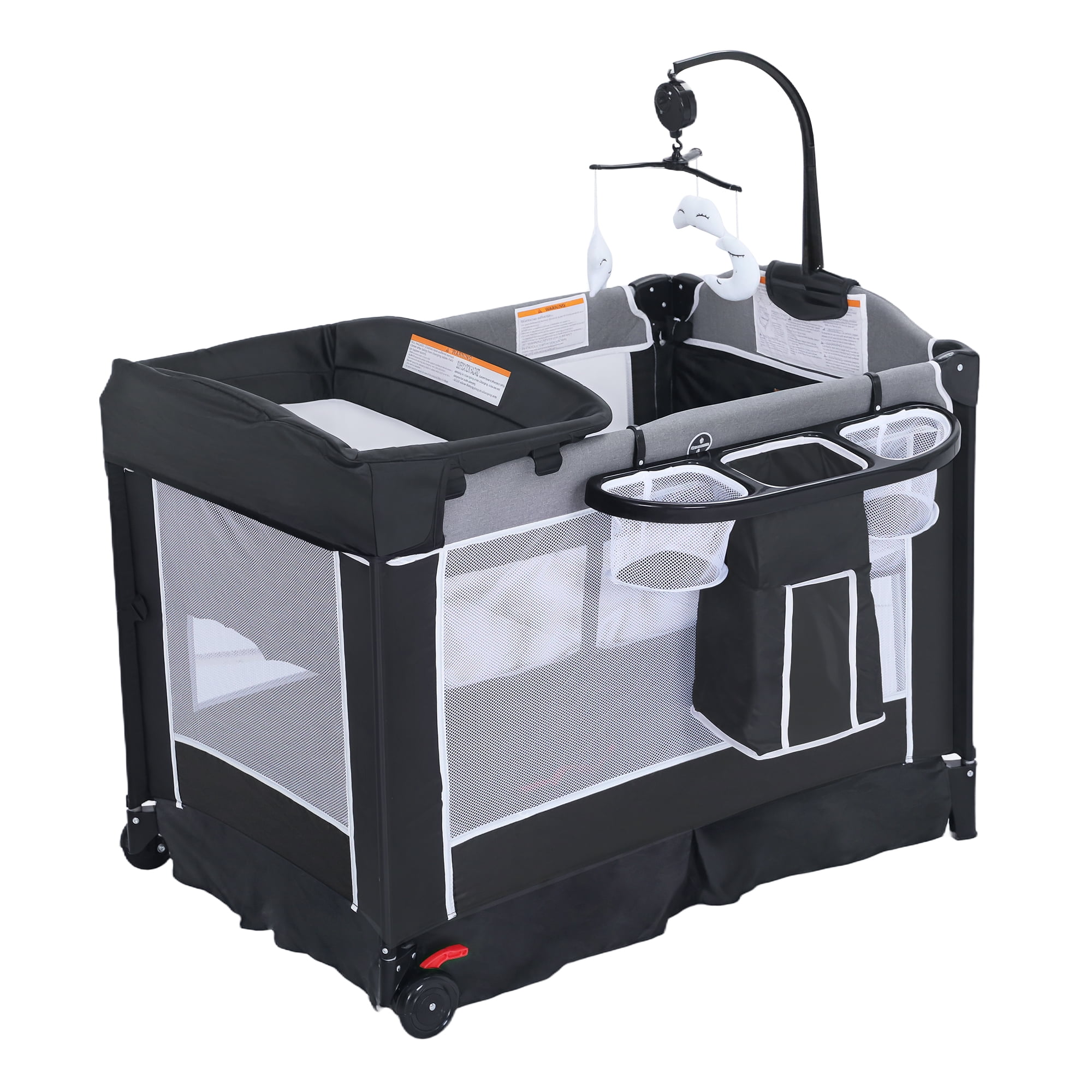 AILEEKISS 4-in-1 Portable Baby Play Yard with Changing Table for Newborn, Dark Grey