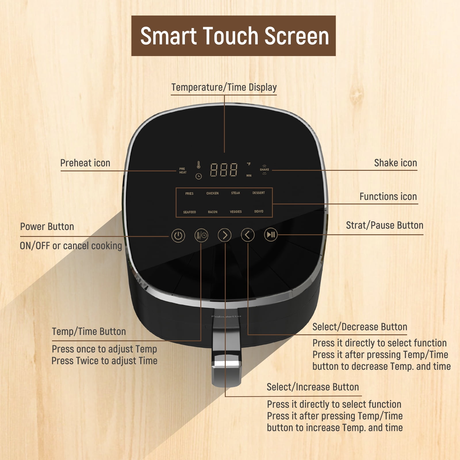Air Fryer, Fabuletta 4.2 Qt Air Fryer Air Fryers With 9 Cooking Functions , Shake Reminder, Powerful 1550W Electric Hot Air Fryer Oilless Cooker, Tempered Glass Display, Dishwasher-Safe & Nonstick