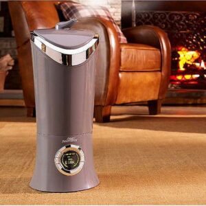 – Programmable humidifier features a timer and 5 mist settings: low, medium, high, supreme, and turbo