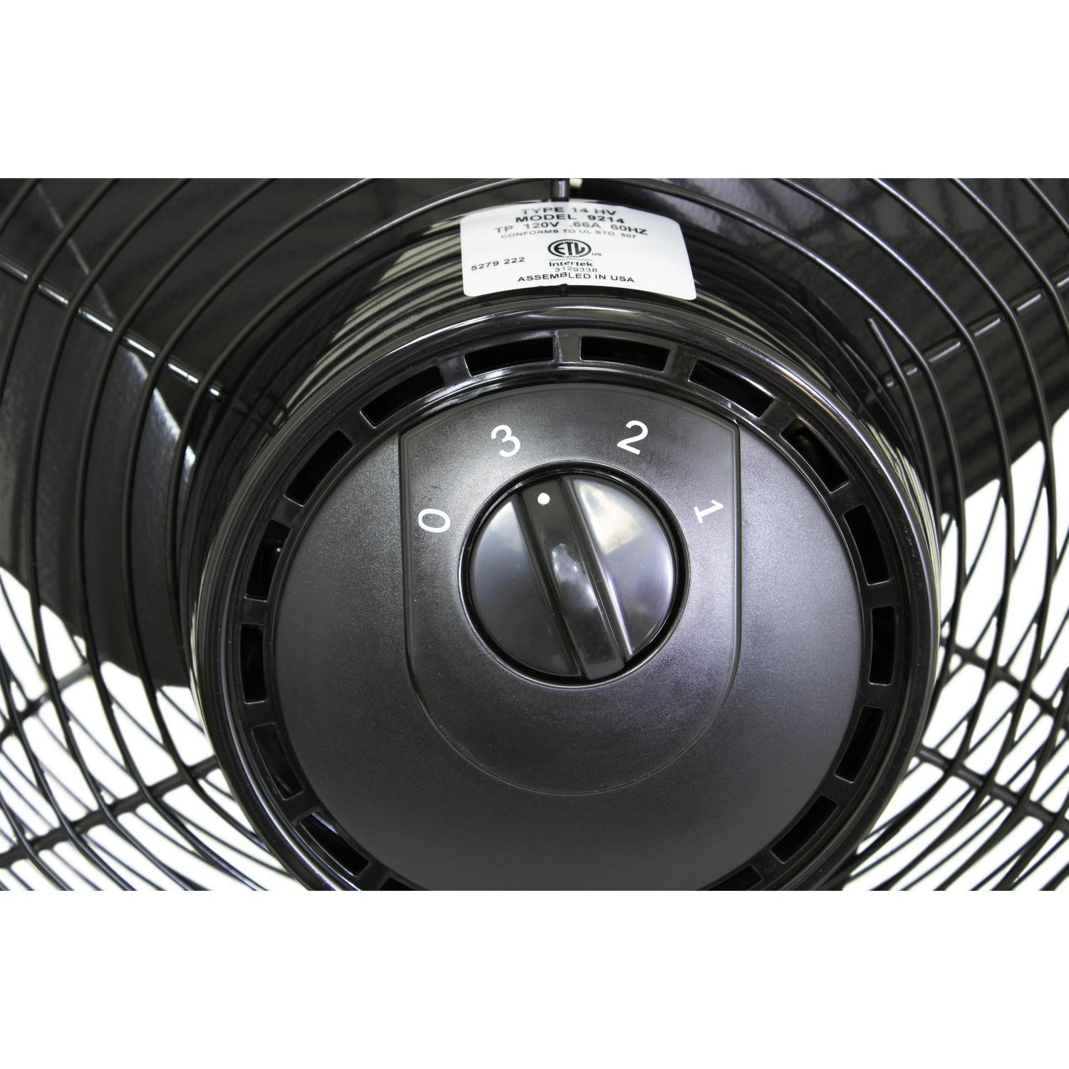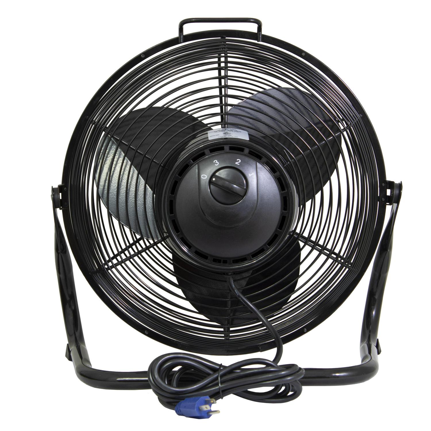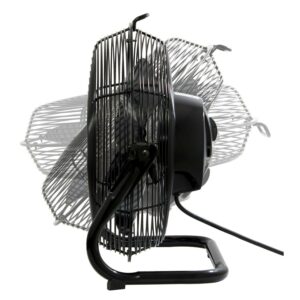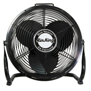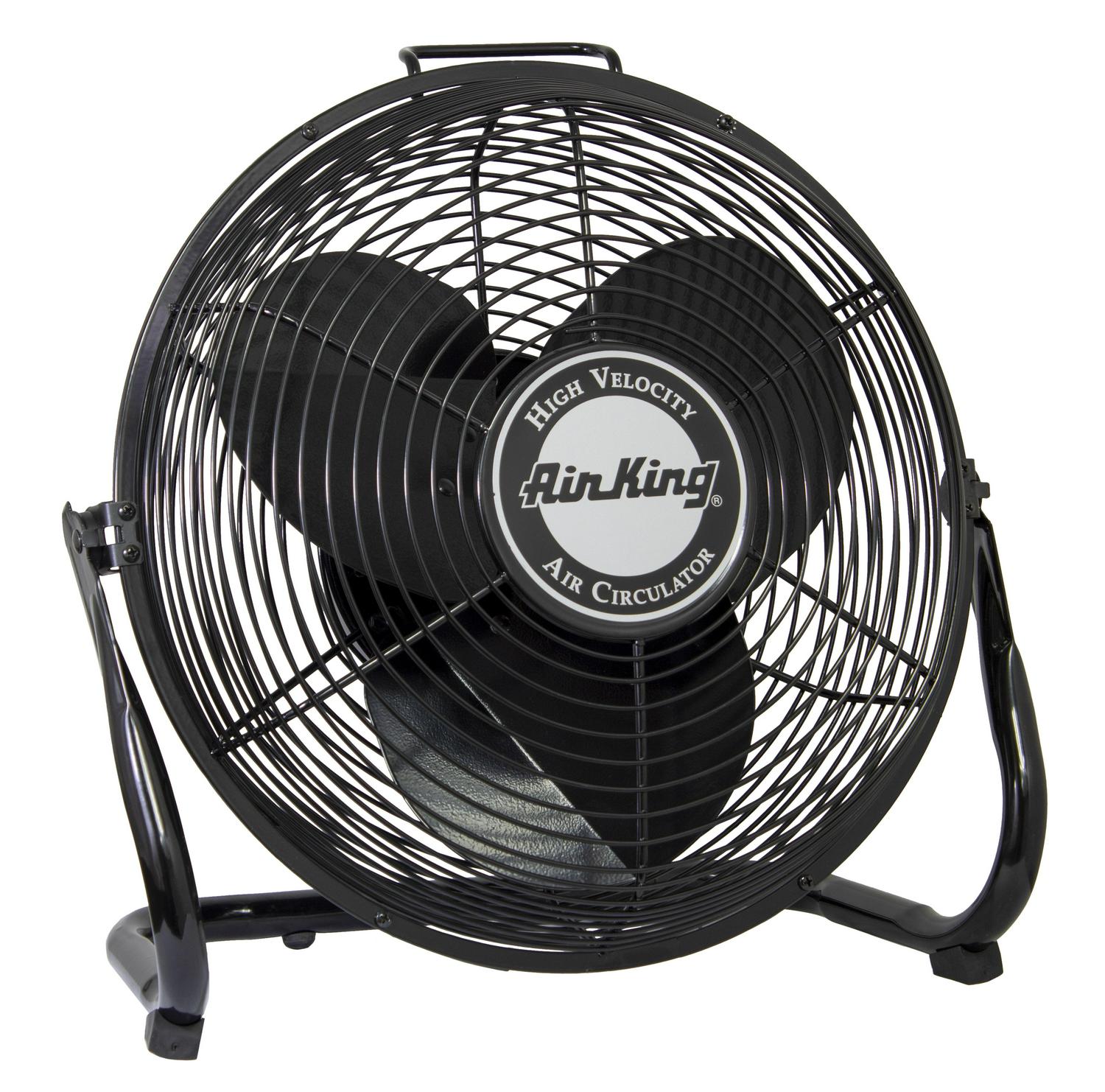 The Air King 9214 14-Inch Industrial Grade High Velocity Pivoting Floor Fan is ideal for use in offices, stores, garages, warehouses and any other industrial or commercial space that needs powerful air circulation. The 14-inch, 3-blade fan is constructed of powder-coated steel for long-lasting durability. The fan has three speeds with a rotary switch on the back of the unit and a pivoting head for directional airflow. The single phase 1/20-horsepower, fully enclosed, permanently lubricated ball bearing motor with a split capacitor provides powerful and effective air movement. Rubber feet reduce vibration and ensure the fan will not move. The 9214 floor fan is ETL listed, OSHA compliant and features a 1-year limited warranty.