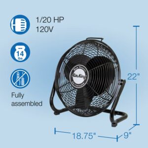Air King 14 Industrial Grade High Velocity Pivoting Floor Fan, 1/20 HP, 9214, Black