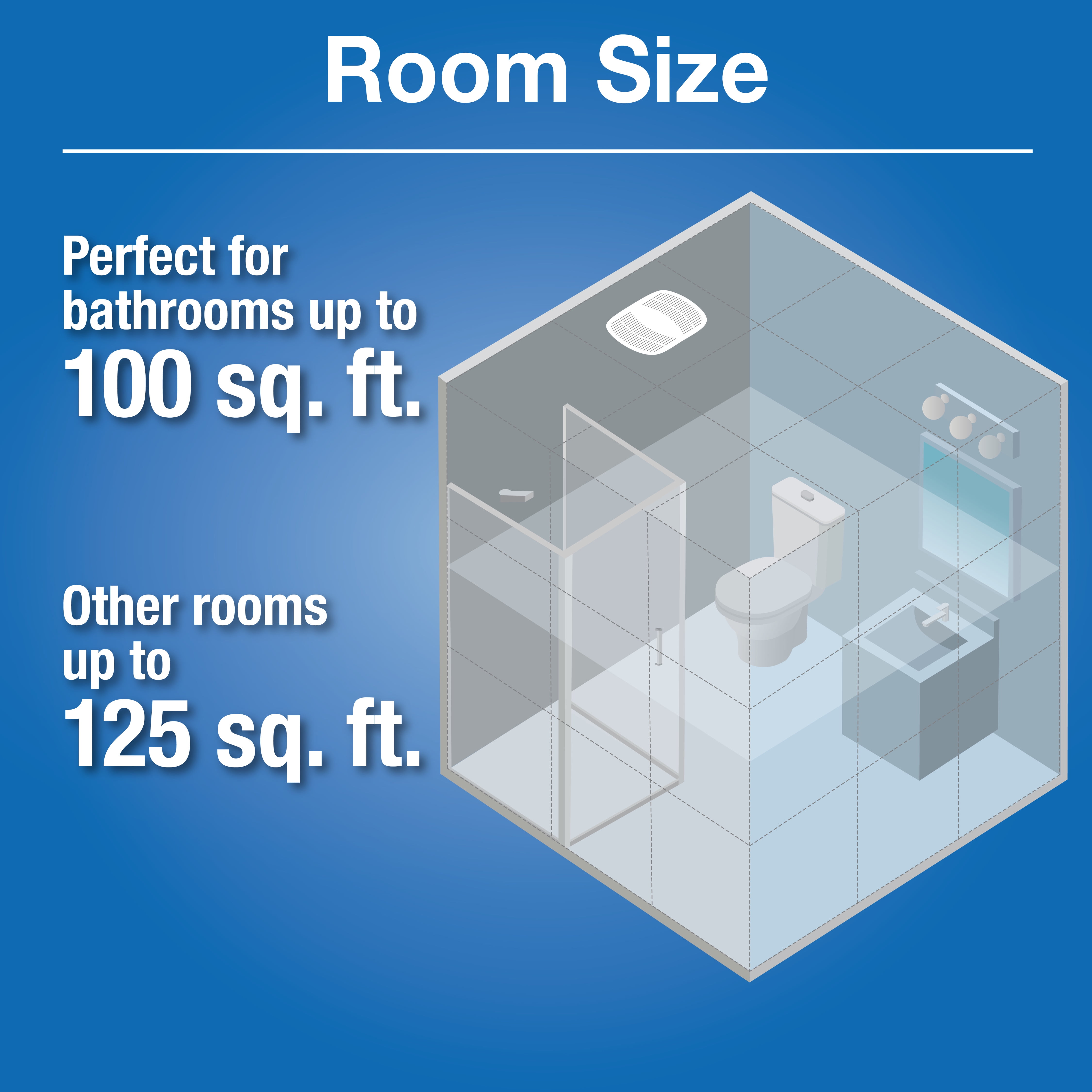 This bathroom exhaust fan features a powerful 100 CFM blower 3.5 Sones For bathrooms up to 100 sq. ft. For other rooms up to 125 sq. ft. Features an unique Snap-In Installation System UL listed for installation over a tub or shower on a GFCI circuit 4″ round duct collar with a plastic damper protects against back drafts and ensures quiet operation HVI Certified performance. Durable housing will not corrode or rust over time Heavy duty, permanently split capacitor, plug-in, 4 pole motor, life time lubrication, thermally protected, suitable for continuous operation. Rated 120 volts, 60 hz White, low profile plastic grill secured in place with torsion springs; easily removed for cleaning. Dimensions – 10.75” x 11.75 Condition: New