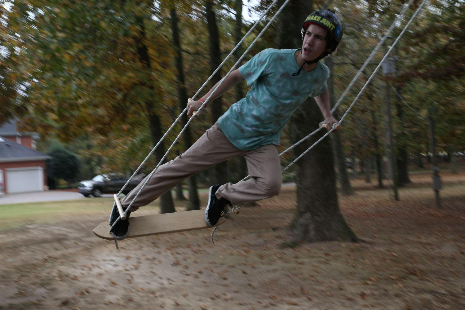 Air Surfer Classic; Solid Maple Wood; 40′ of 7/16″ red alert rope; Weight Limit: 250 lbs; Age Limit 5+; Item #: 38-SURF