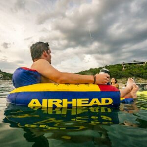 Float, rest, and relax on our Airhead Bimini Lounger tube! Whether you decide to float your legs, stretch them out, or sit on the comfortable mesh, this luxury pool float guarantees a great time. The molded cup holder keeps your drink cool, and the zippered storage compartment holds suntan lotion and other necessities. You’ll also love that this inflatable Airhead Bimini Lounger tube comes with a backrest and neck rest, which ensure unparalleled comfort.