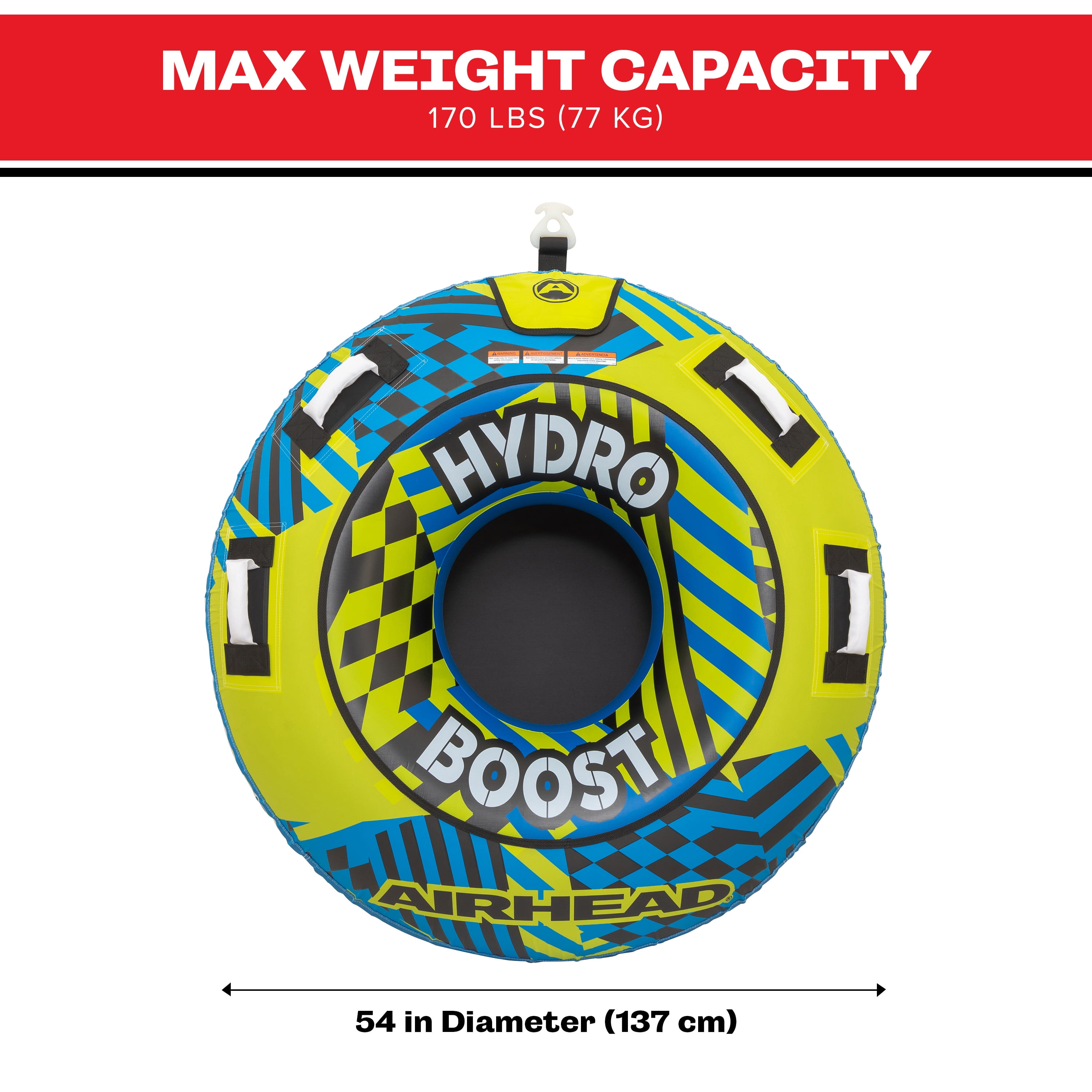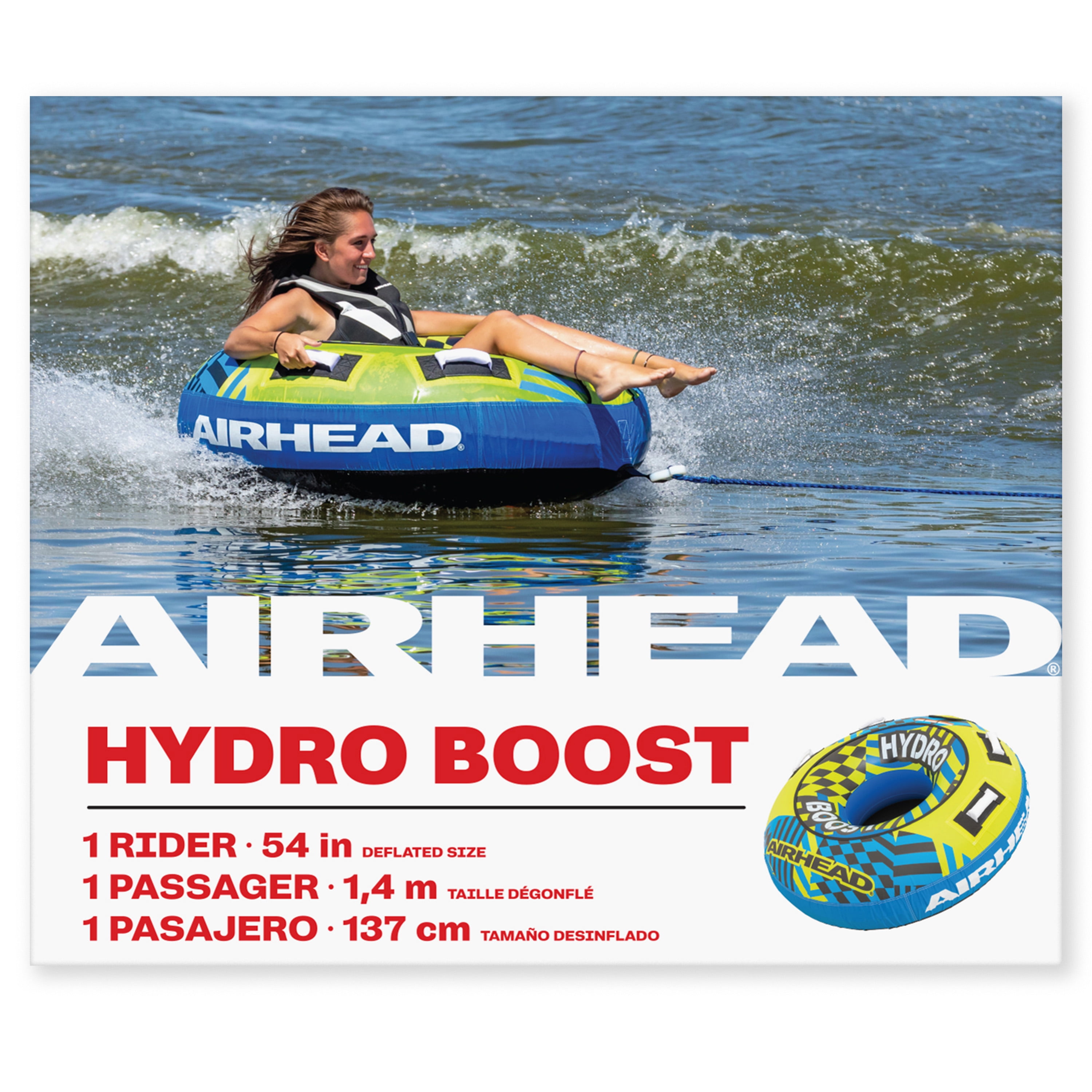 Airhead Hydro Boost 1 Person Nylon Towable Tube, 54″ Deflated Size, Max Capacity 170 lbs