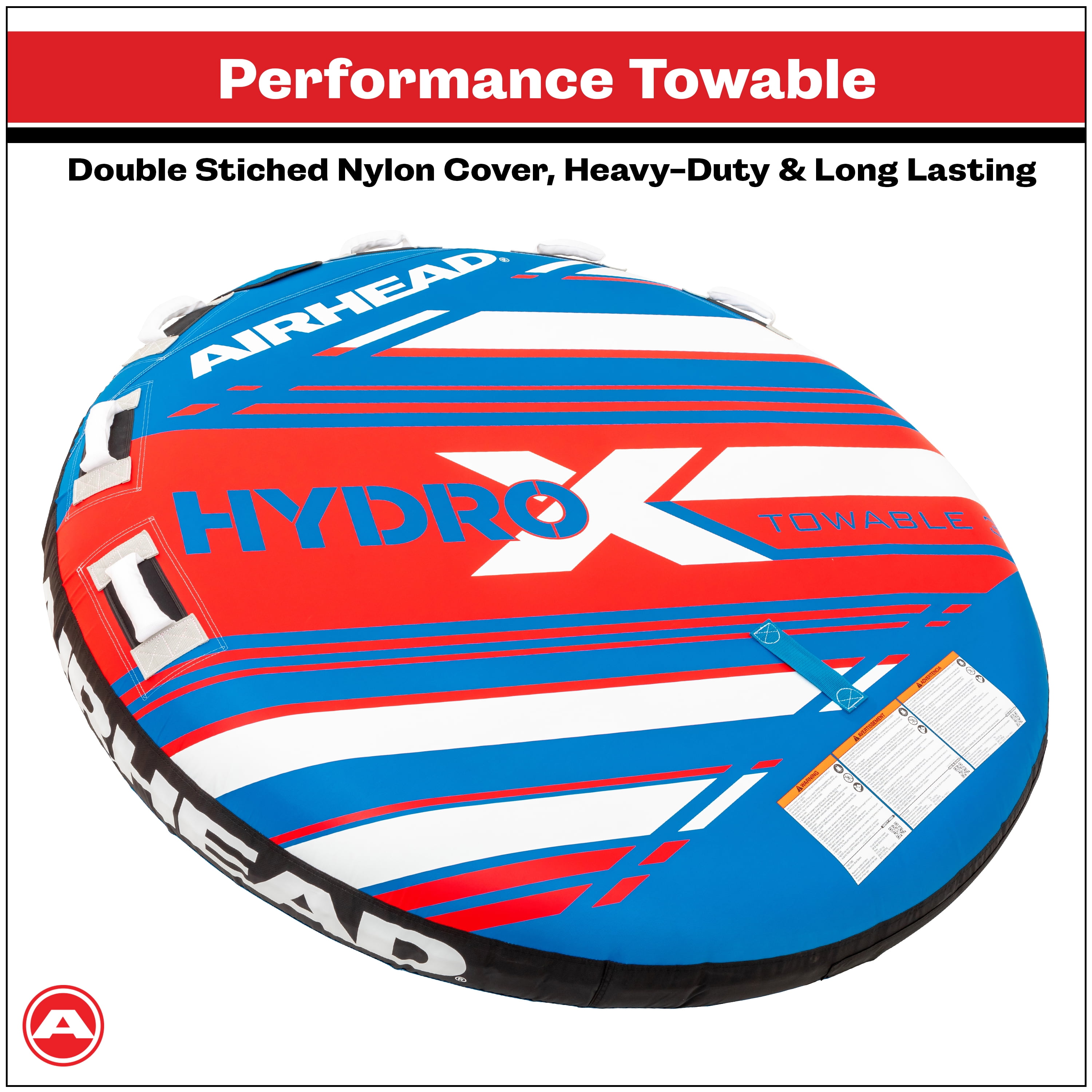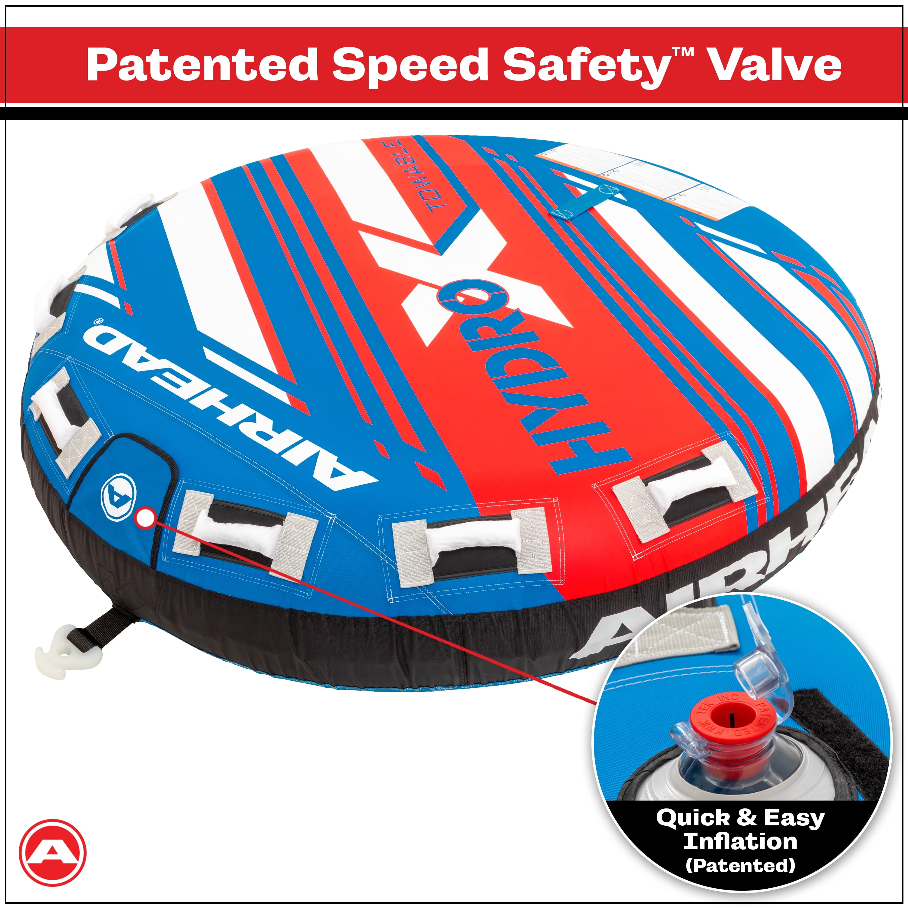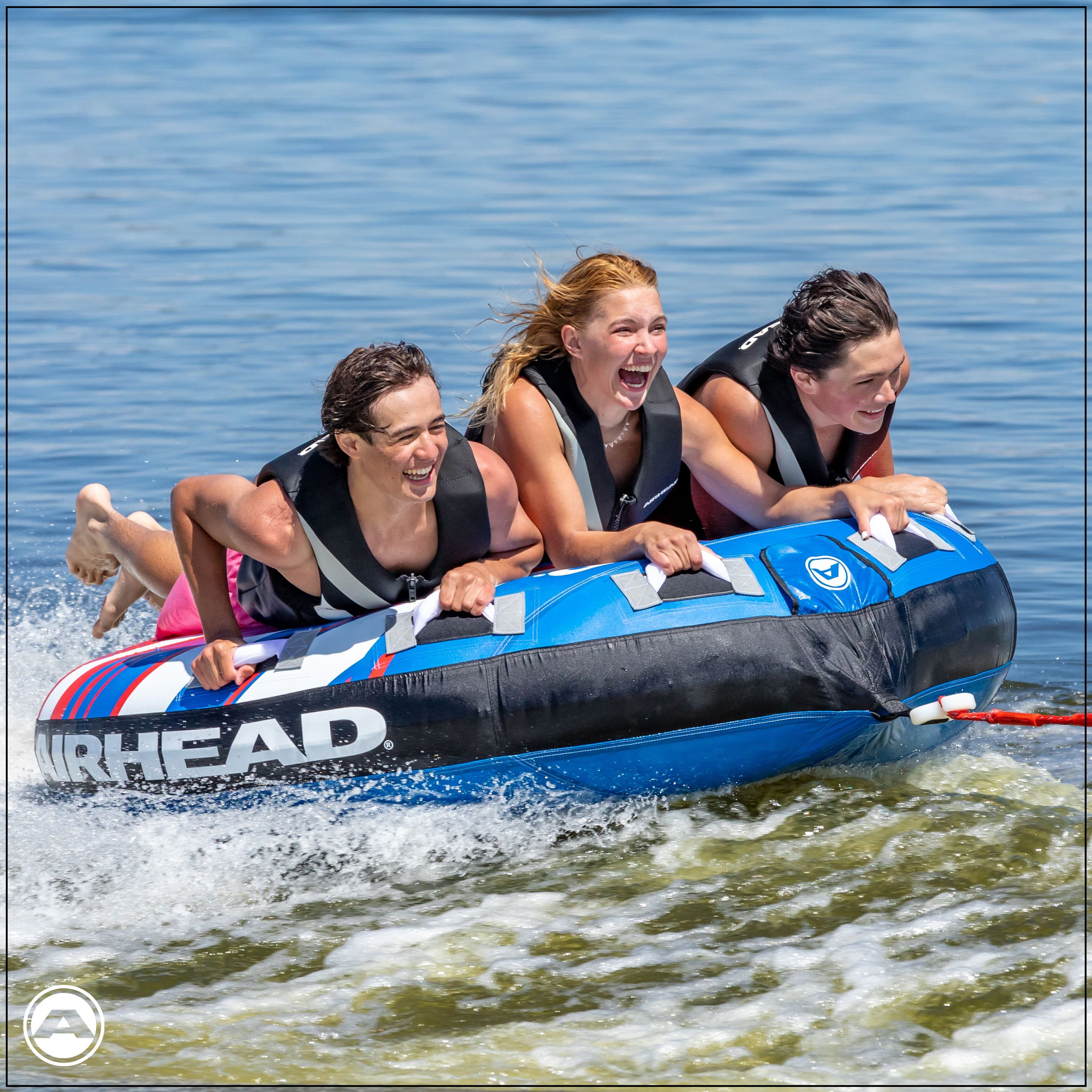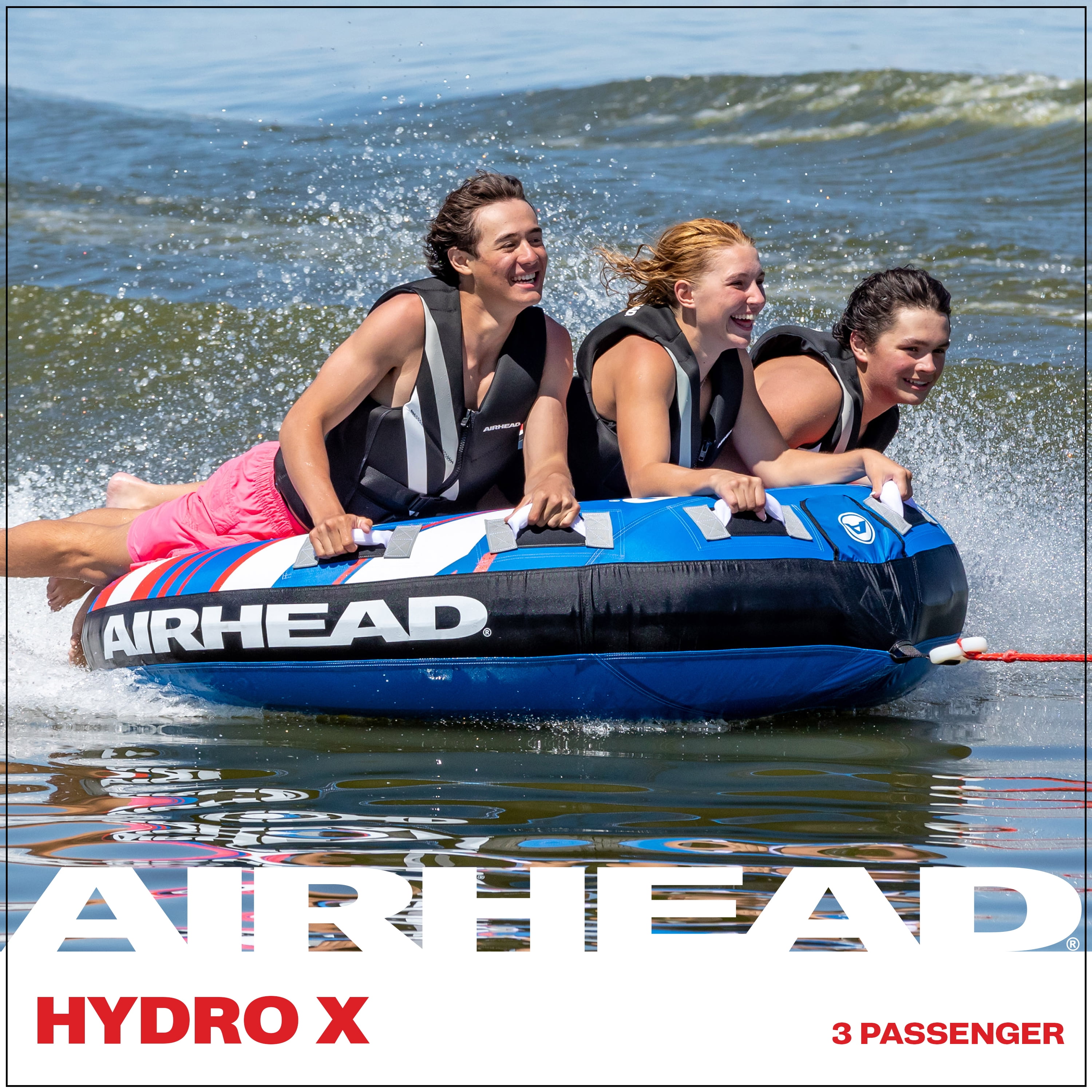 Airhead Hydro X 3 Person Towable Tube for Boating, Blue, White, & Red, 70″ Deflated Size, Max Capacity 510 lbs.
