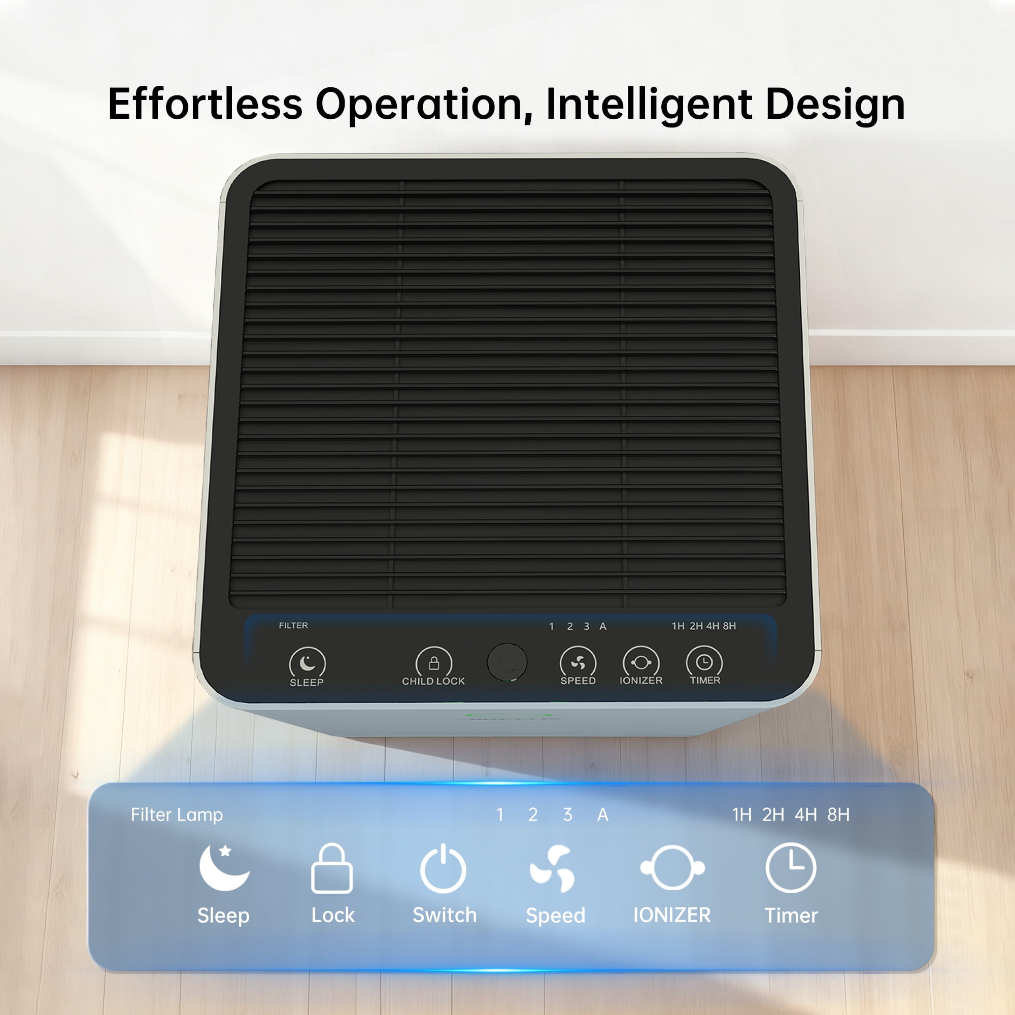 Double Side Air Intake – High Efficiency HEPA Air Filter: This pet air purifiers for home large room is designed with double air intakes. Compared with the single air intake design, HEPA air purifiers large room has double purification effect in the same time, greatly improving the purification speed. Our air purifiers for dust remove CADR is up to 450(m³/ h), it can refresh air per hour for a room as large as 2500 sq ft / 200 m². Turn on the high-efficiency air purifiers for pets, so that you can enjoy a new and comfortable air environment all the time. HIGH PERFORMANCE – Enjoy fresh air in 12 minutes with the True HEPA Filter Air Purifier. Featuring Vortex Air Technology, double air intake, and CADR of 260 CFM / 450 m³/h (Clean Air Delivery Rate), large capacity air purifiers can purify air of a 2500sq. ft space once in one hour. The higher the CADR of an air purifier for dorm room, the larger its purification area. Completely refresh the air 2x per hour in a 1250 sq. ft room; Completely refresh the air 5x per hour in a 500 sq. ft room. Fresh Your Home – High Efficiency HEPA Air Filter: Equipped with H13 True HEPA filter and high-efficiency double side air inlet purification system, our H13 HEPA filter adopts multiple stack filtration technology, which HEPA air purifiers large room can effectively remove 99.97% of as small as 0.3 microns in the air, such as dust, smoke, pollen, hair, and odor. Air Ionizer : lONIZER air purifier generates negative ion into the air which can attach to floating like pollen, dust, dander and weight them down. It’s also been proven to effectively reduce odors in rooms. 4 Fan Speeds & Auto Mode – The large room air purifiers are three adjustable fan speeds, which are 1/2/3/A. You can select the fan speed according to the air quality. The room purifiers for home large room higher the fan speed, the faster the cleaning. If you don’t know how to adjust the fan speed, you can turn on the Auto mode, which can help you select the appropriate fan speed. Ultra Quiet & 4 Timers – Bedroom air purifier for smoke works at very low noise level (≤15dB) at one speed and in sleep mode. You can also turn on the timer mode when you sleep or go out, which are 1/2/4/8H. The ultra-quiet air purifier’s LED panel light also turns off automatically, allowing your family to enjoy the fresh air in sweet dreams. Air quality indicator – Visual indicator displays real-time air quality in the room with LED lights (Red/Yellow/Green). Built-in air quality sensor measures monitor your air quality and adjusts power to deliver clean air-then reports results you can see. No Annoyed Noise – Ensure your Sleep – Air Purifiers for bedroom runs at very low noise level (≤15dB) on the lowest speed and the Sleep Mode, the quiet HEPA air purify cleans the air without noise pollution. You can run hepa air purifier for home large room all night long without disturbing your sleep. Put one in your child’s bedroom, they’ll hardly notice it is there, enable you and your family to enjoy the fresh and clean air in sweet dream. Child Lock – Considerable child lock design helps avoid babies getting hurt and avoid any random setting changes caused by accident touch. (And the air purifier for home large room filter replacement remind button will blink when the filter expires to suggest you to replace.) Ideal Gift – Air purifiers are great for friends and family as Housewarming gifts, Birthday gifts, Valentine’s Day gift, etc. home air purifiers perfect for larger rooms such as living rooms, open kitchens, loft apartments and basements.