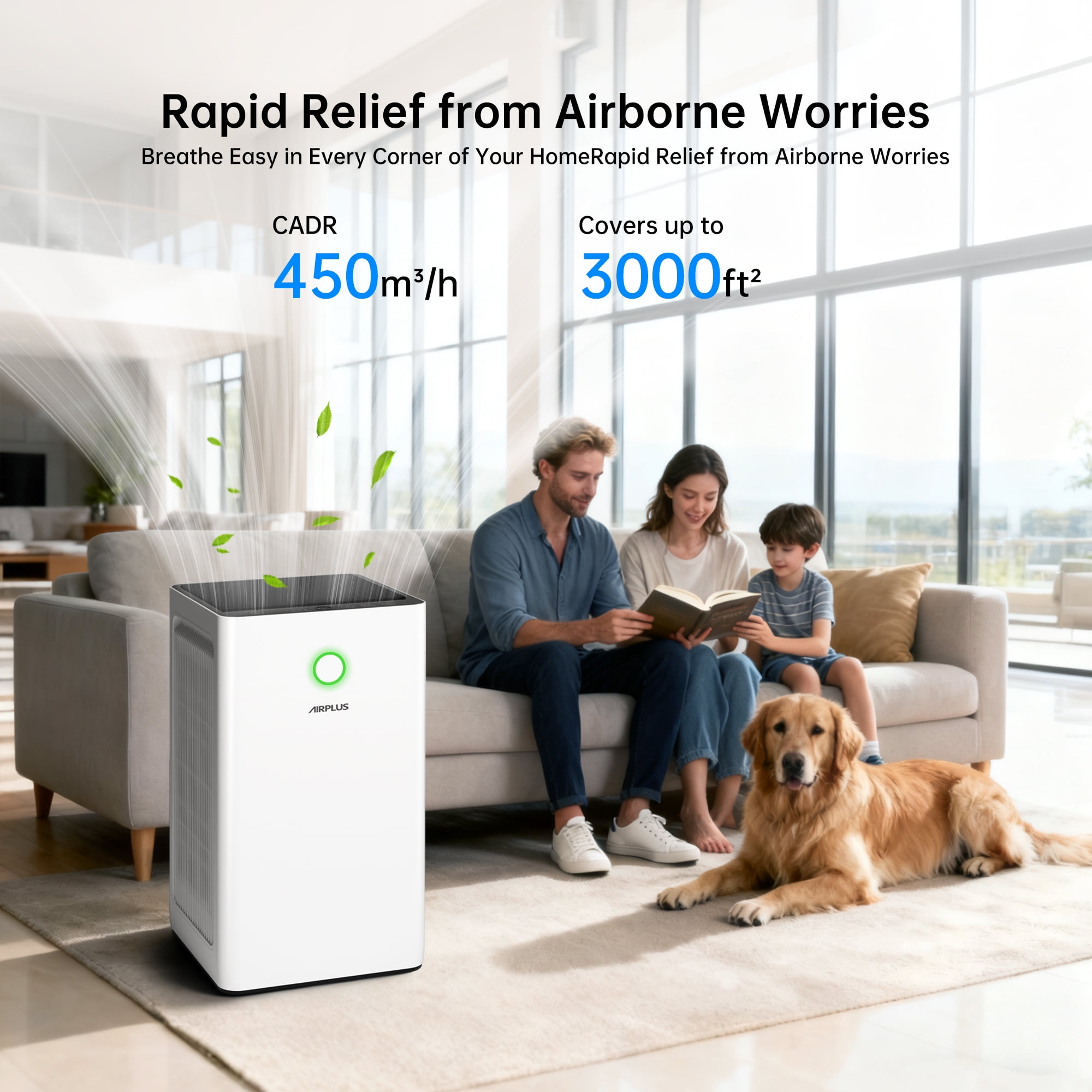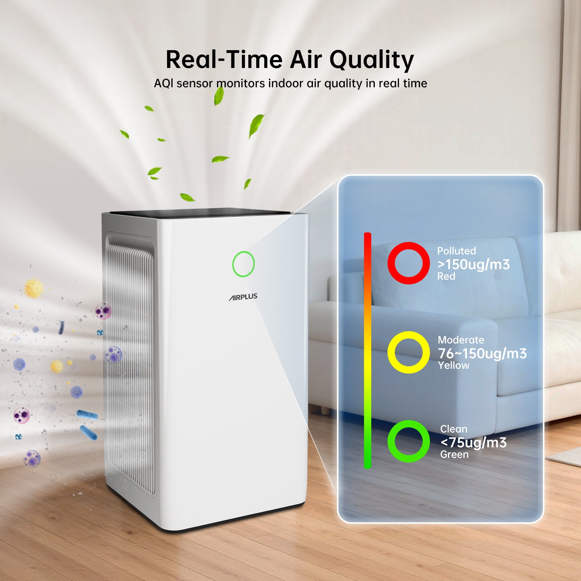 AIRPLUS HEPA Air Purifier for Home Large Rooms Up to 5000 Sq Ft with PM2.5 Display Air Quality Sensor & Smart Auto Mode, Remove Pet Dander, Smoke, Pollen, Dust, Quiet Air Purifiers for Bedroom