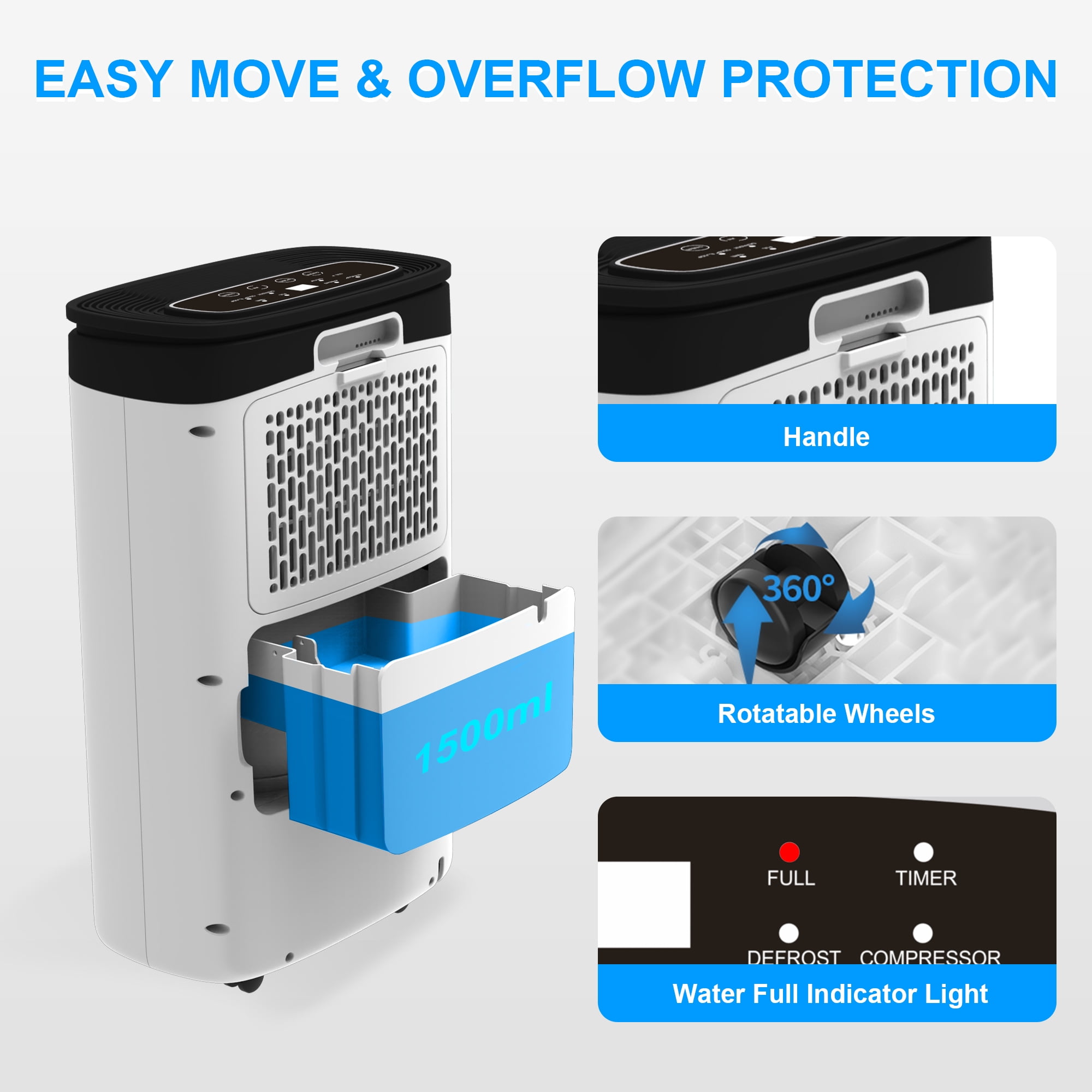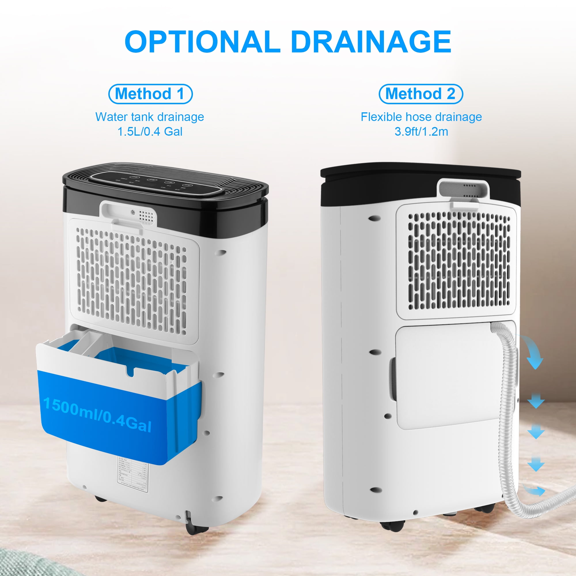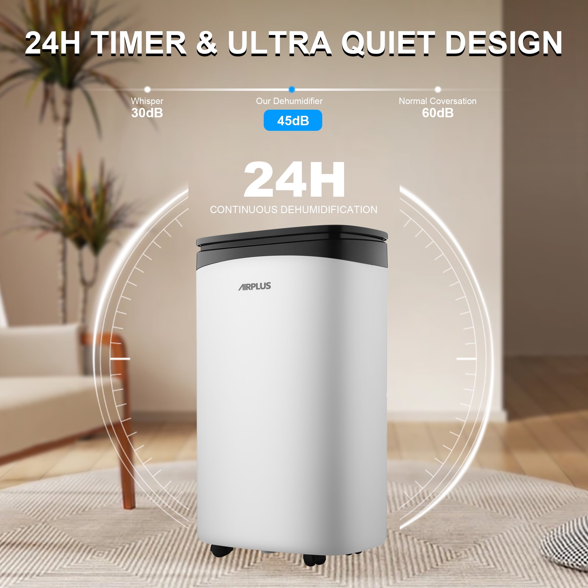CONVENIENT & EASY TO USE 30 Pint(DOE Rating 7.54 pints/day) Dehumidifiers for bathroom mold provides you with a timing Shutdown/Start-up function – you can program the 24-hour timer to suit your lifestyle. bathroom dehumidifiers with hose What’s more, this large dehumidifiers for basement with hose is surprisingly. dehumidifiers for basement with fast dry And basement dehumidifiers the convenient universal wheels make our home dehumidifiers for home with drain hose easy to move. LOW-NOISE & OPTIONAL MODES The average sound and adjustable fan speed & humidity will get you far away from the disturbing noise when sleeping or studying – suitable for baby, pregnant woman, the old… This house dehumidifier for home also provides drying clothes and dehumidifying mode for you to choose from. Efficiently dry clothes with ONE button. dehumidifiers for basement WIDE APPLICATION The versatile 30 Pint(DOE Rating 7.54 pints/day) dehumidifiers for basement large room suits bedrooms, living rooms, dining rooms, attics, basements, and garages well. Dehumidifiers for home damp efficiently removes moisture while effectively reducing the musty odor in your home, providing you with a dry and comfortable. TWO-WAY TIMING Air 30 Pint(DOE Rating 7.54 pints/day) dehumidifiers with drain hose provides you with a timing boot and shutdown function – you can program the 24-hour timer whenever you need. For example, it can save you money not only by turning the basement dehumidifier for home on at night in areas that have cheaper off-peak electricity rates but also by turning it off as long as your preset time is up for damp clothes. dehumidifiers for basement TWO METHODS OF DRAINAGE 30 Pint(DOE Rating 7.54 pints/day) whole house dehumidifier large room for home 1500 sq ft offers you two drainage methods small dehumidifiers for home and basement. Manual drainage of a 1.5L reservoir as well as continuous auto drainage with a hose. Well connect the hose and your appliance will drain automatically. With home dehumidifiers for large room unique design, you will never be caught by the consequence of a forgotten full water tank. The 3.94ft long hose is included. dehumidifiers for basement Dehumidifier 30 Pint(DOE Rating 7.54 pints/day) Dehumidifier Dehumidifier for Home dehumidifiers for basement Feature Brand: AIRPLUS Model No.: AP2002 Product Color: White Floor Area: 2000 Square Feet Water Tank Capacity: 1.5L Operation Mode: Standard; Drying; Sleeping; Raining Intelligent Constant Humidity: 40%RH-80%RH Timing Setting: 24Hours Timer Function: Auto Shut Off When Tank Full Drainage: Auto Drain/Continuous Drain With Drain Hose Rated Voltage: 115V~ Rated Frequency: 60Hz Rated Input Power: 192W Max. Input Power: 260W Rated Input Current: 2.3A Max. Input Current: 2.8A Sound Pressure Level: <45dB (A) Refrigerant Charge: R134a/3.35oz Net Weight: 20.5 lbs Product Dimensions: 29.7*18.0*52.0cm/11.69*7.08*20.47inch